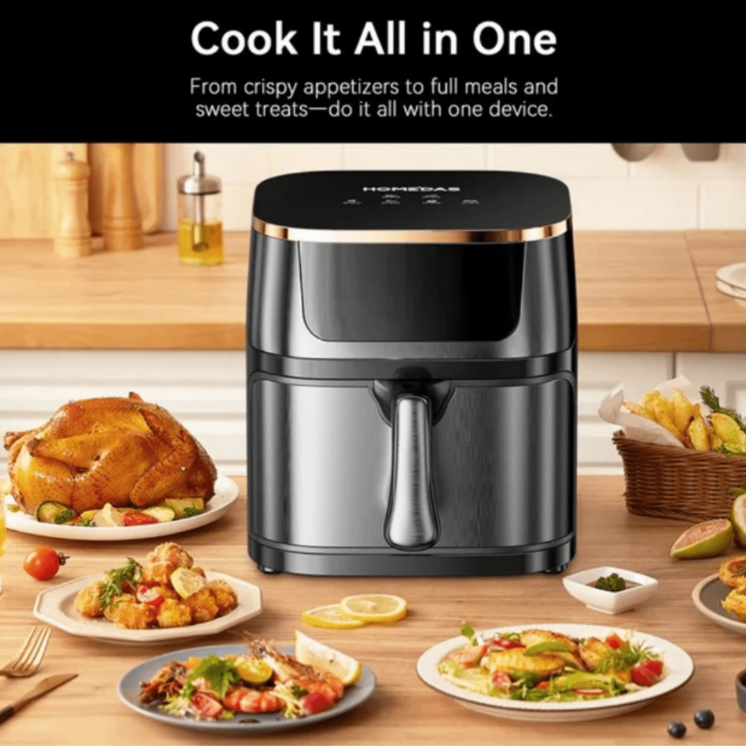 • The air fryer provides cooking guidance, optional preheating, as well as a dishwasher safety basket and potato chip tray, providing you with all the fun and convenience of frying food.