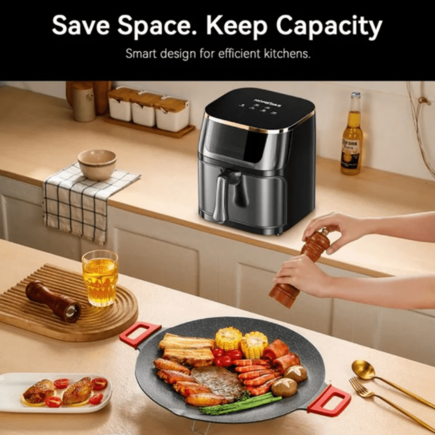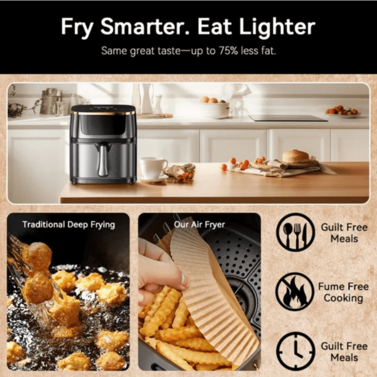 • • Includes non stick baskets and freshness box trays that can be placed in dishwashers Smooth and durable design brings elegance and style to any kitchen. • Includes recipes and cooking charts