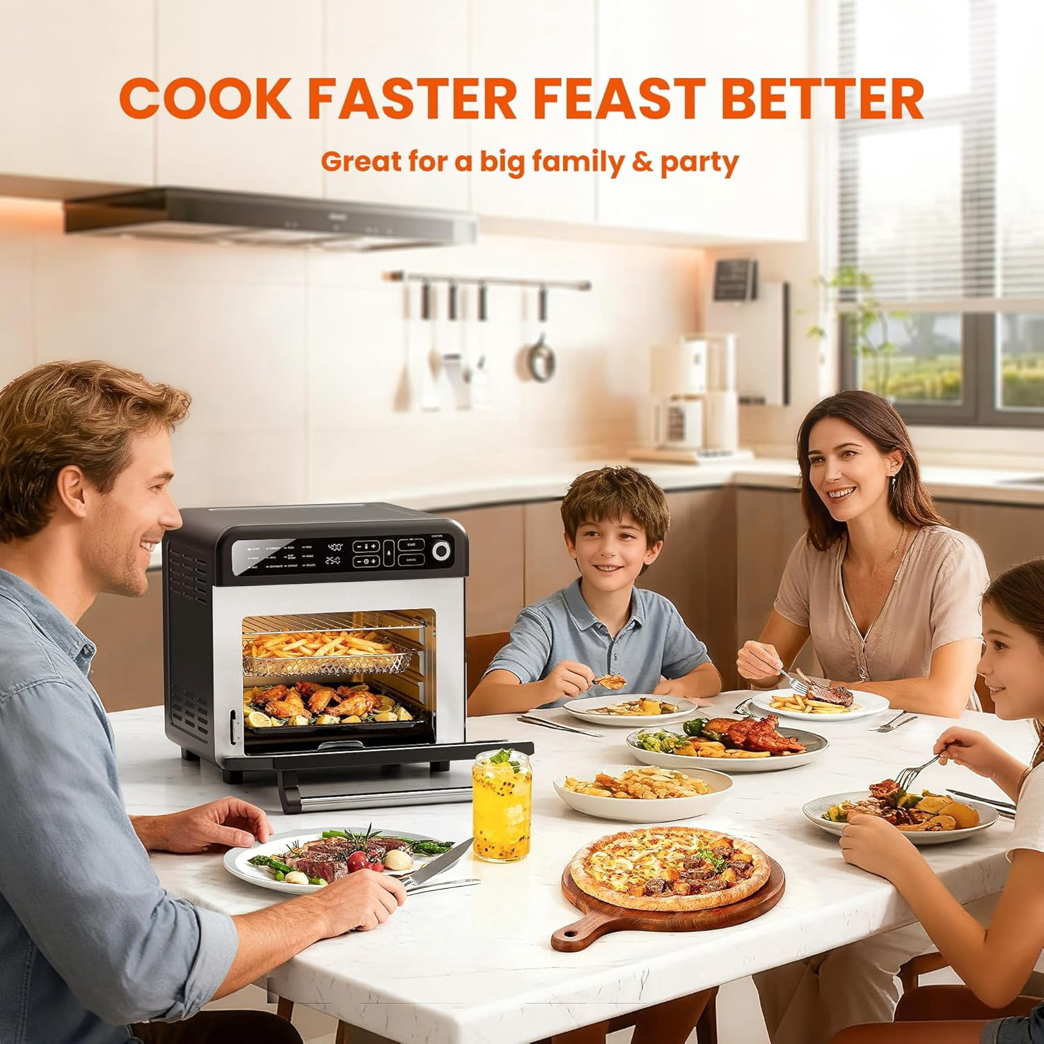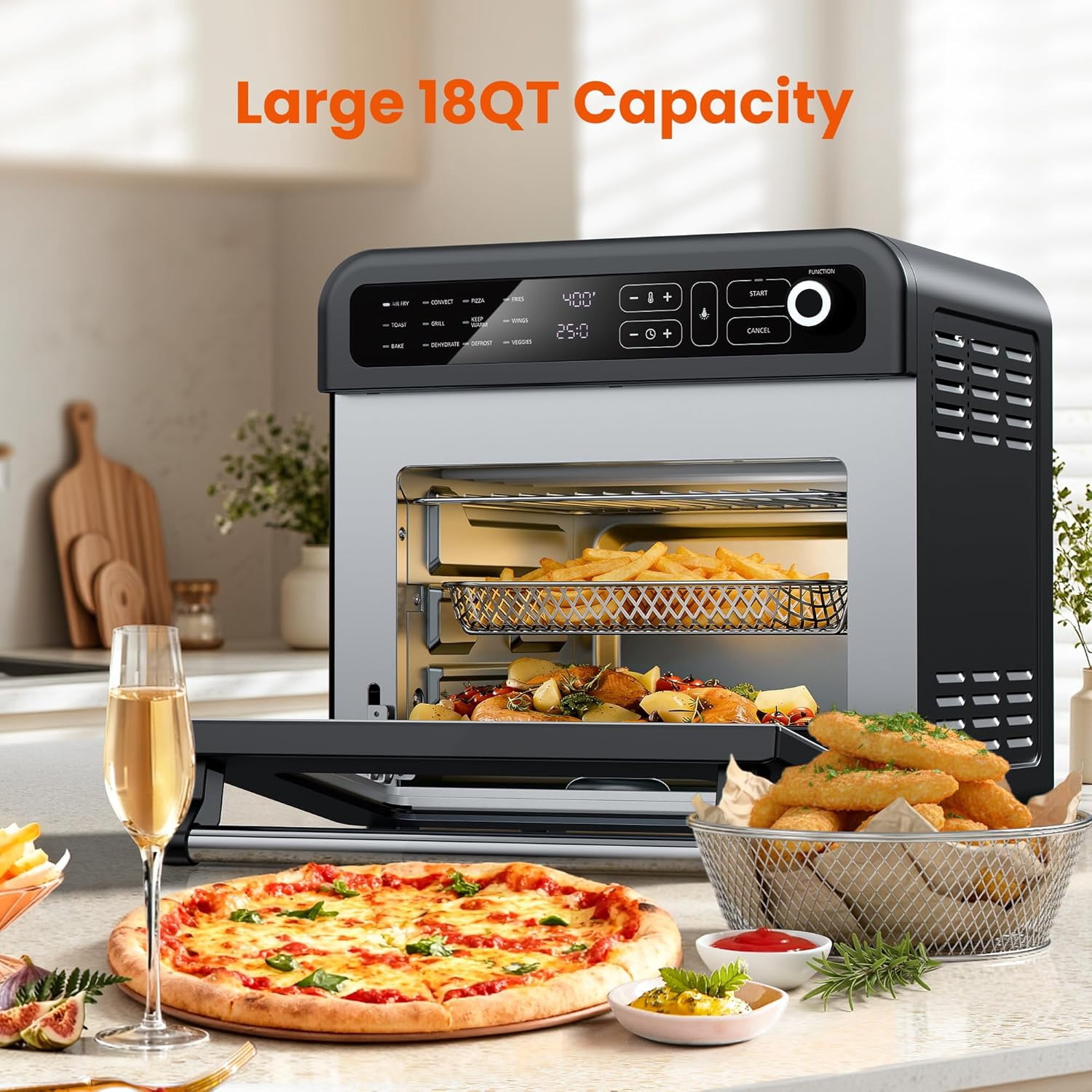 12-in-1 Air Fryer Toaster Oven Combo,18 Qt Countertop Convection Oven with Rapaid Steam,Grill,Bake,Broil,Air Fry,Toast,Dehydrate,Pizza,450°F Max Temperature Oven Cooker with 24 Timer – Black