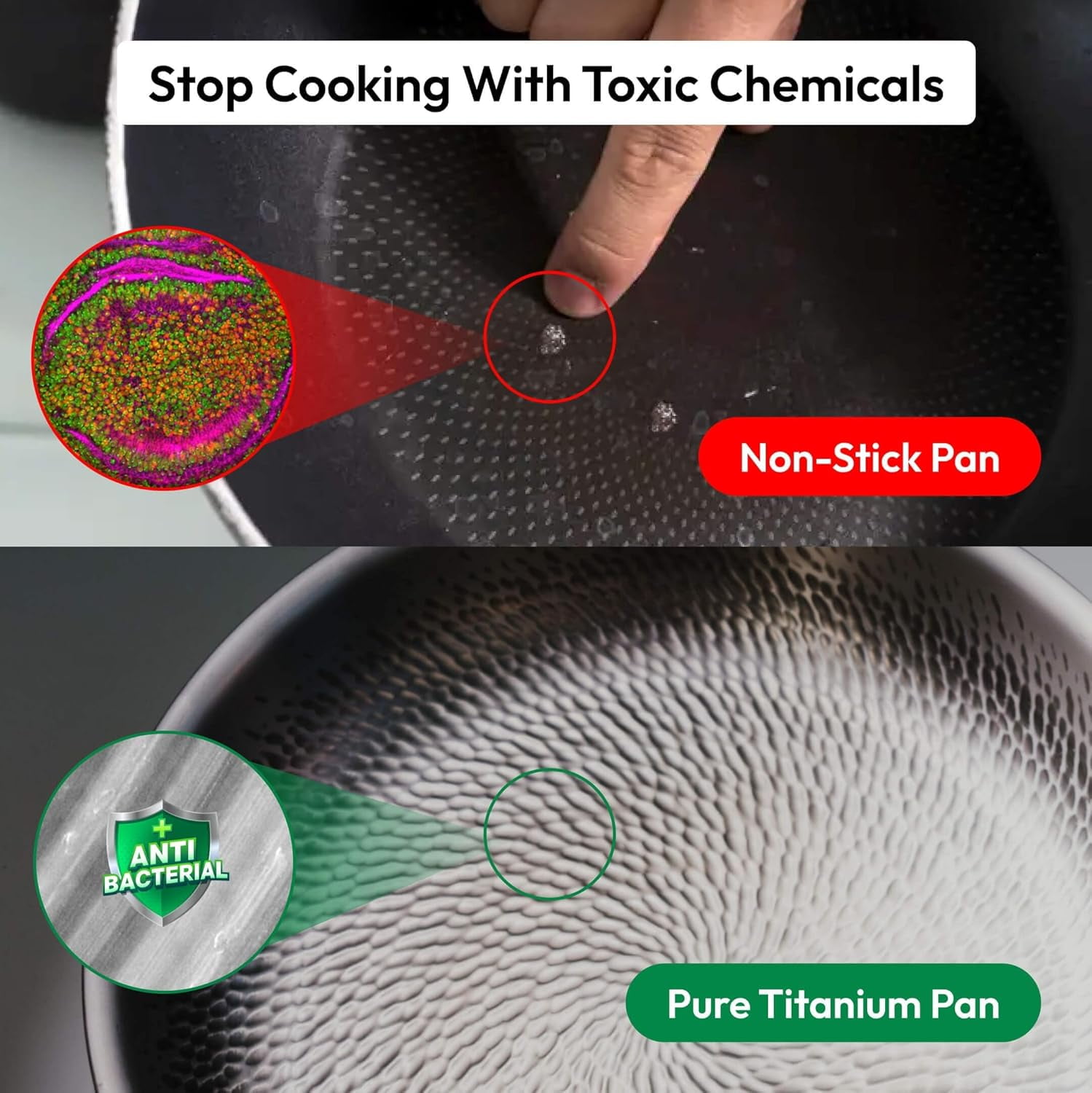 - 【Lightweight Design · Scratch-Resistant Performance】Lighter than traditional stainless steel cookware, this titanium pan is easy to handle while remaining resistant to surface wear from regular cooking and utensil use. The balanced construction makes this titanium frying pan comfortable for frequent use in home kitchens