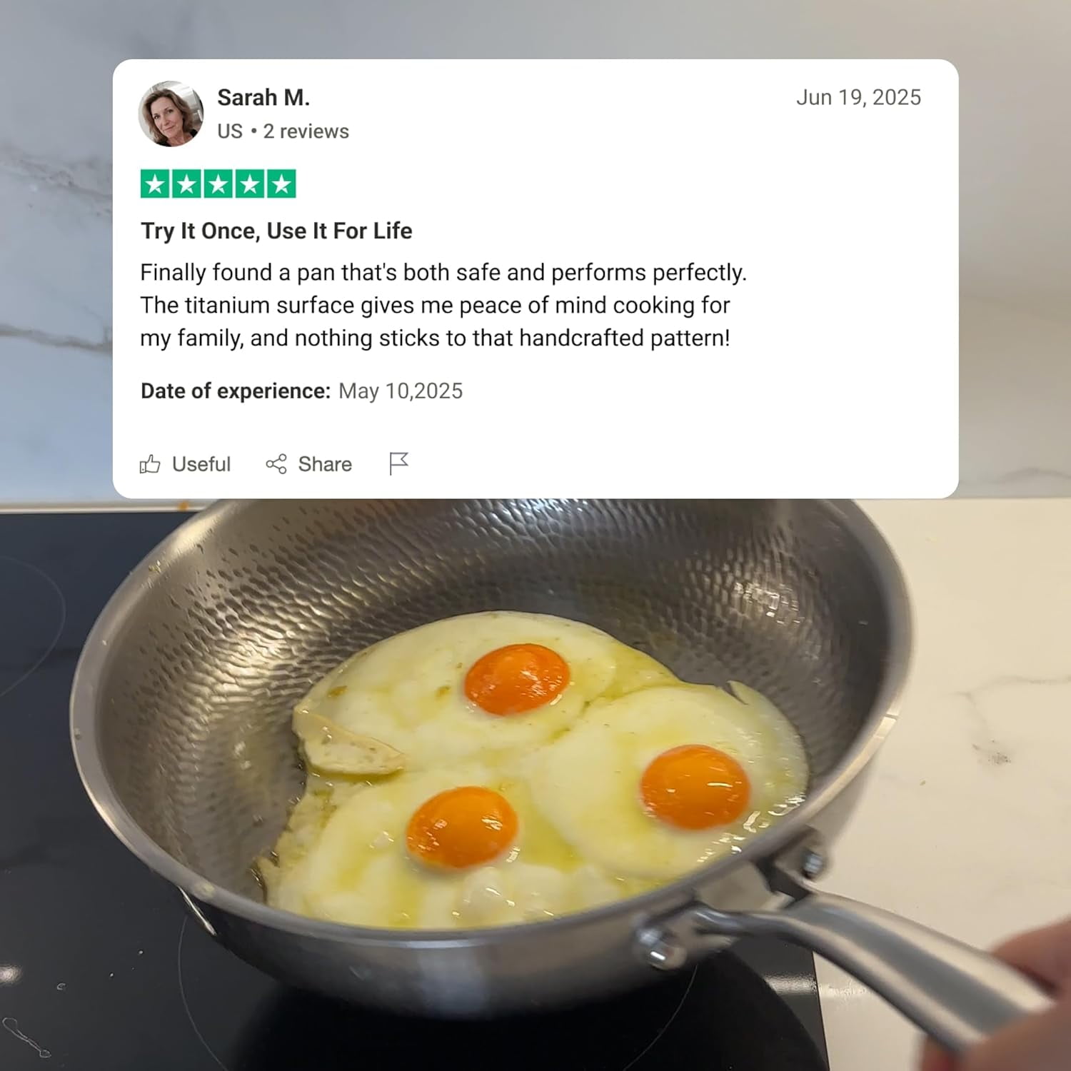 - 【Even Heat Distribution · Consistent Cooking Results】Titanium’s thermal properties allow heat to spread evenly across the pan surface. The hammered structure helps reduce uneven heating, supporting reliable results whether sautéing, searing, or simmering with this titanium cookware