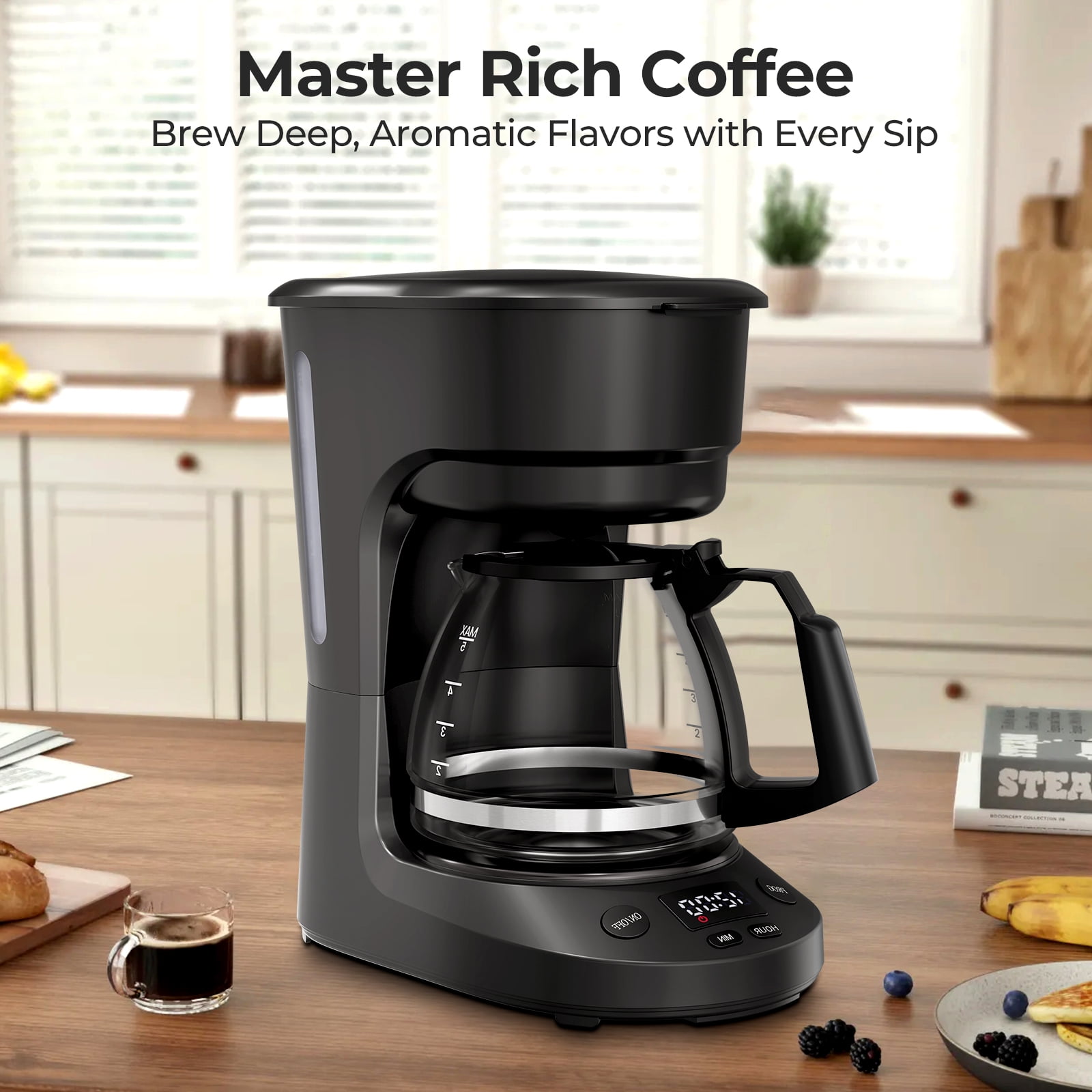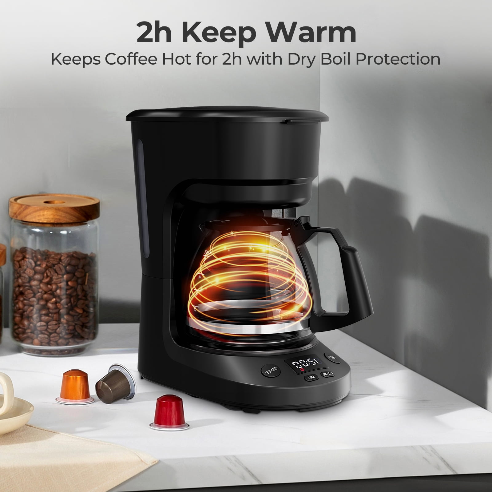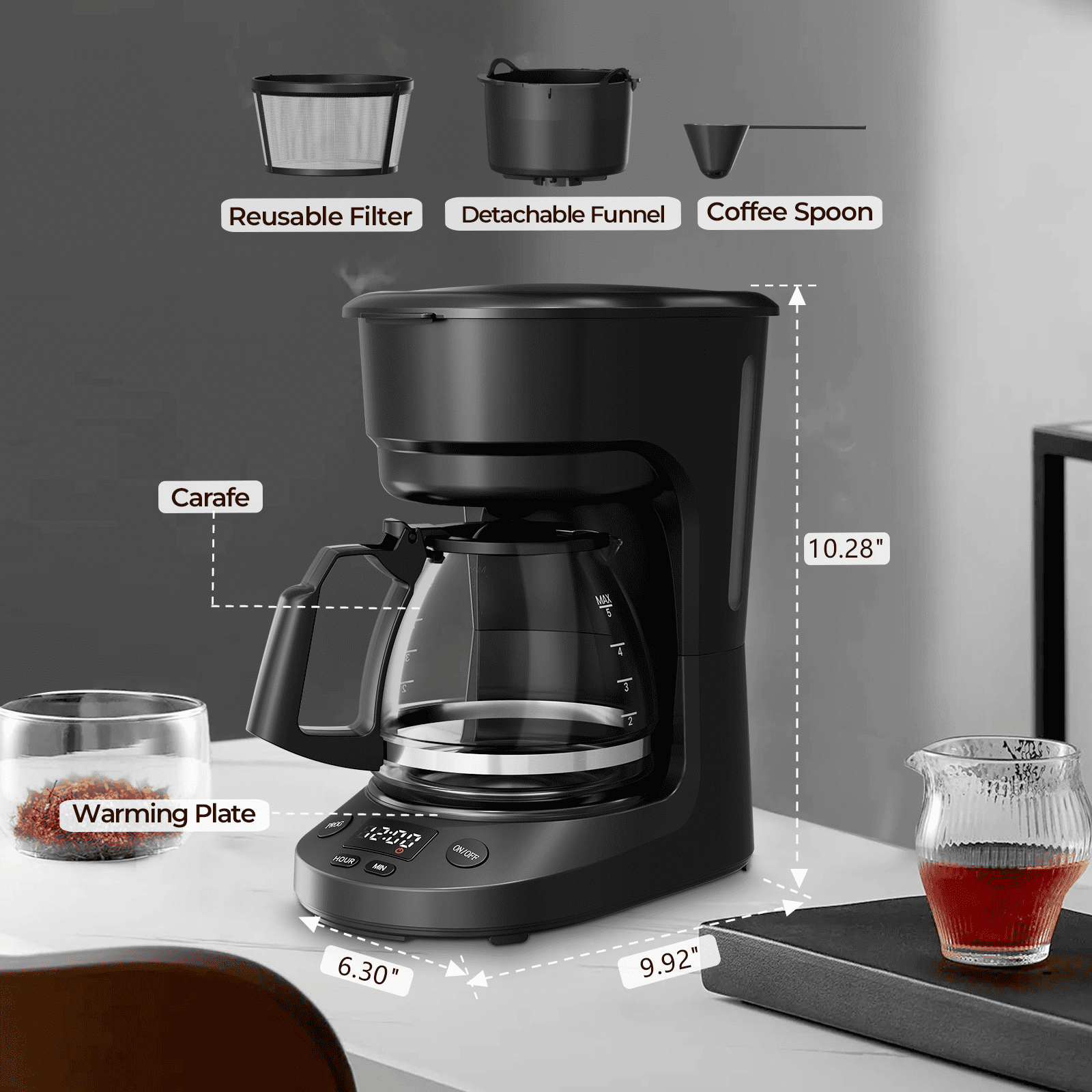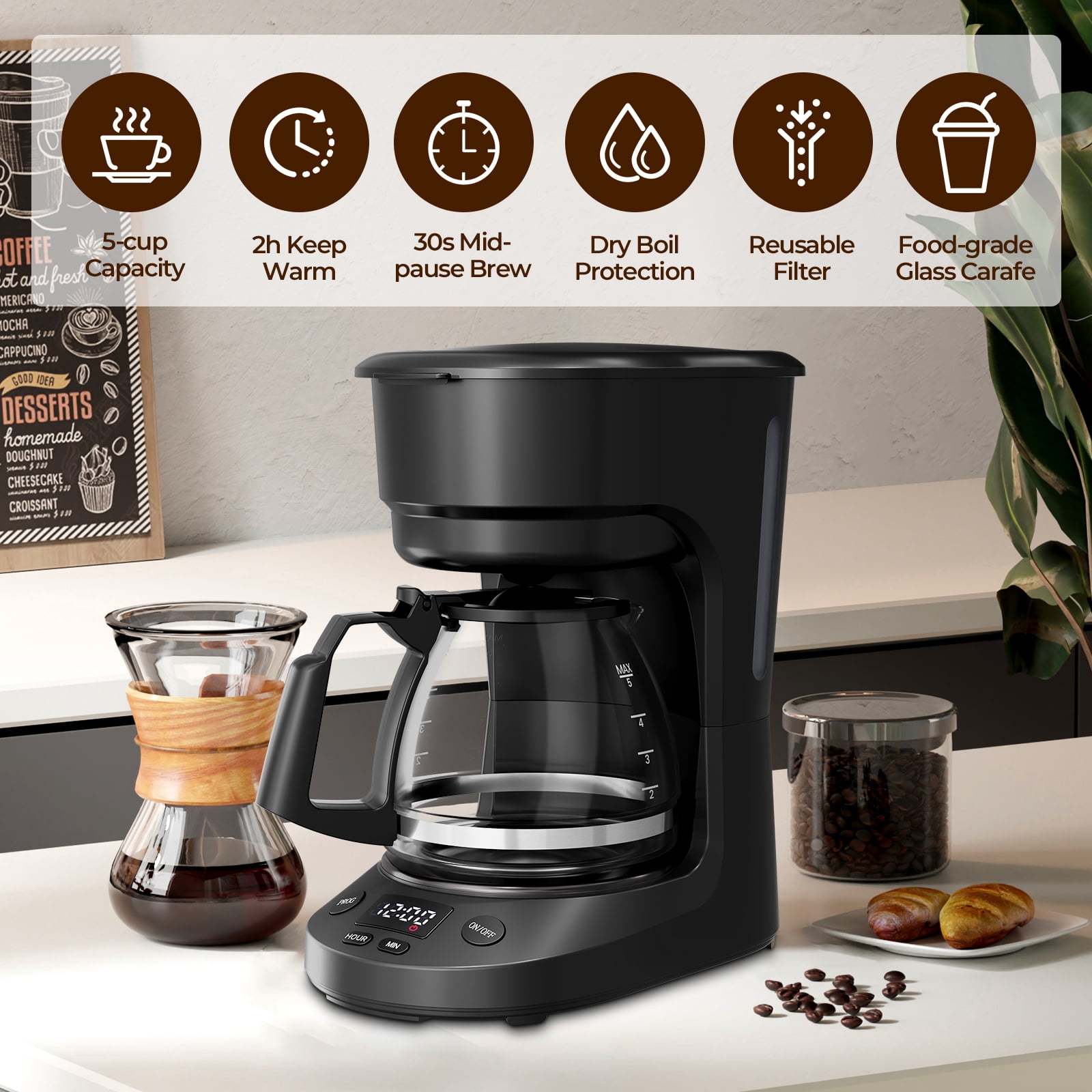 WAA 5 Cup Drip Coffee Maker,Programmable Delay Brew,Auto Shut-Off,Reusable Filter 25oz Tank,Black