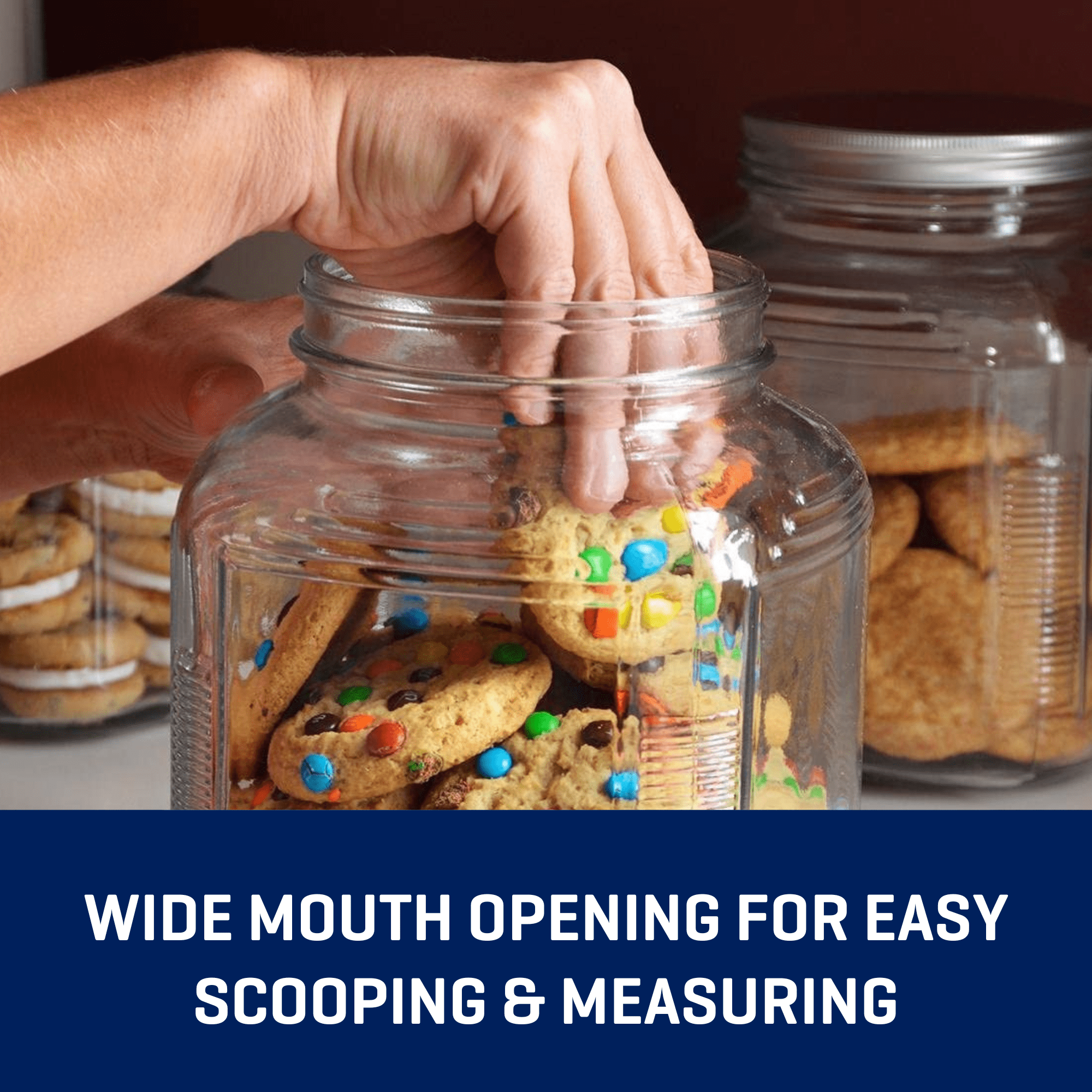 Durable Design: Features a thick, wide-mouthed glass construction for easy scooping and measuring, while protecting food flavors.