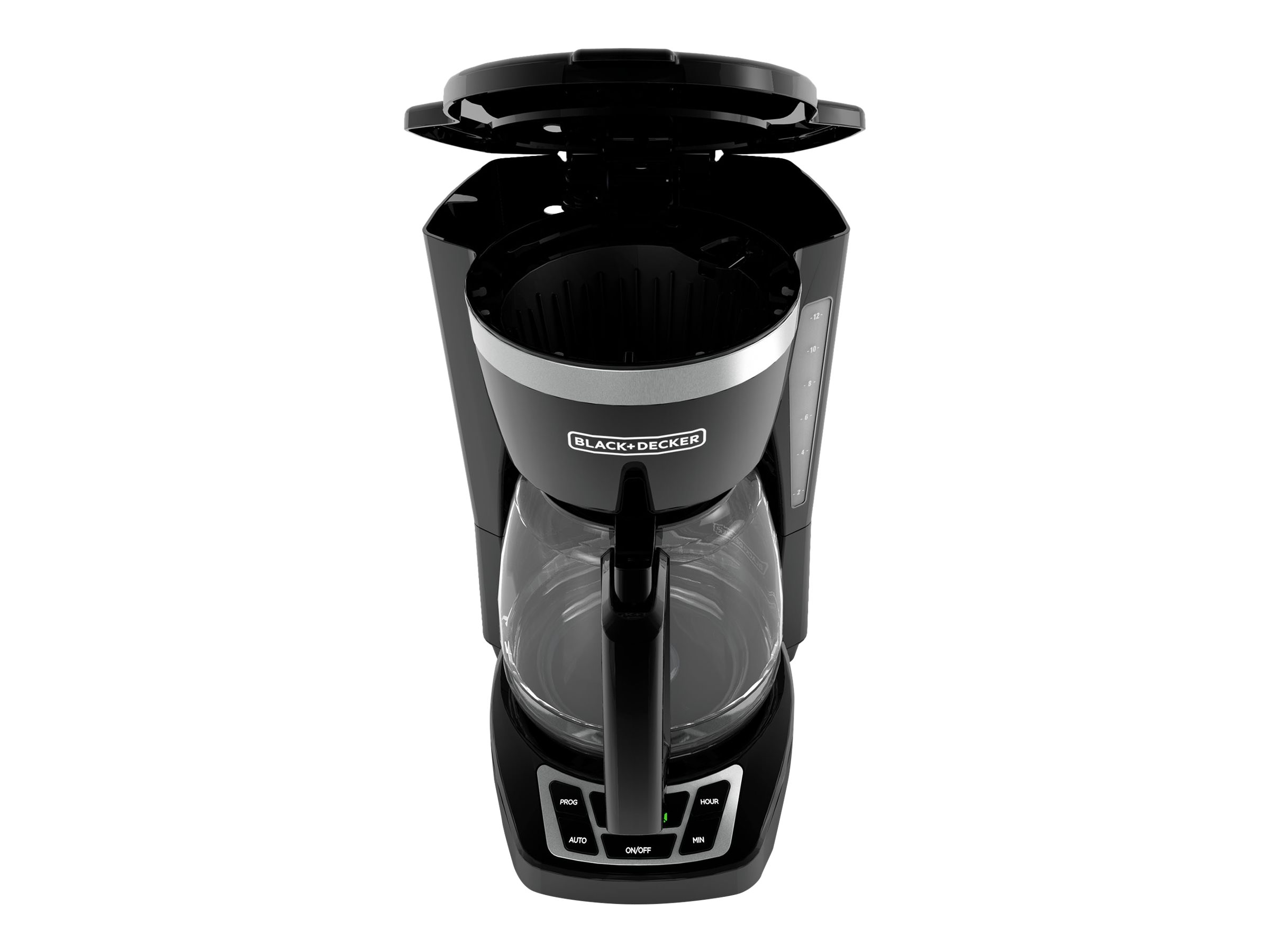 BLACK+DECKER 12-Cup Digital Coffee Maker, Programmable, Washable Basket Filter, Sneak-A-Cup, Auto Brew, Water Window, Keep Hot Plate, Black