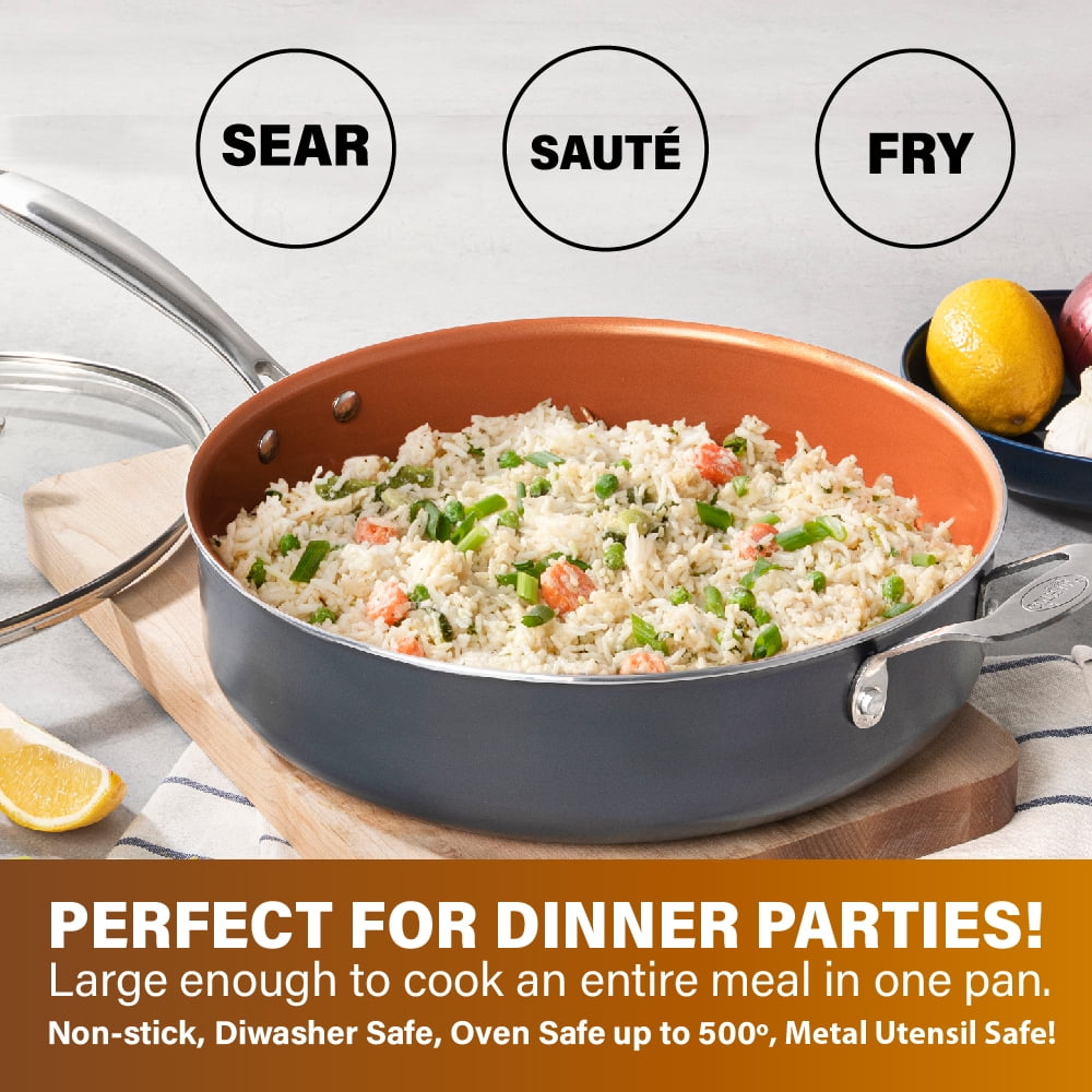 Gotham Steel Nonstick Frying Pan 12″ inch 5.5 Quart Cooking Pot Skillet with Lid Ceramic Saute Pan Jumbo Cooker