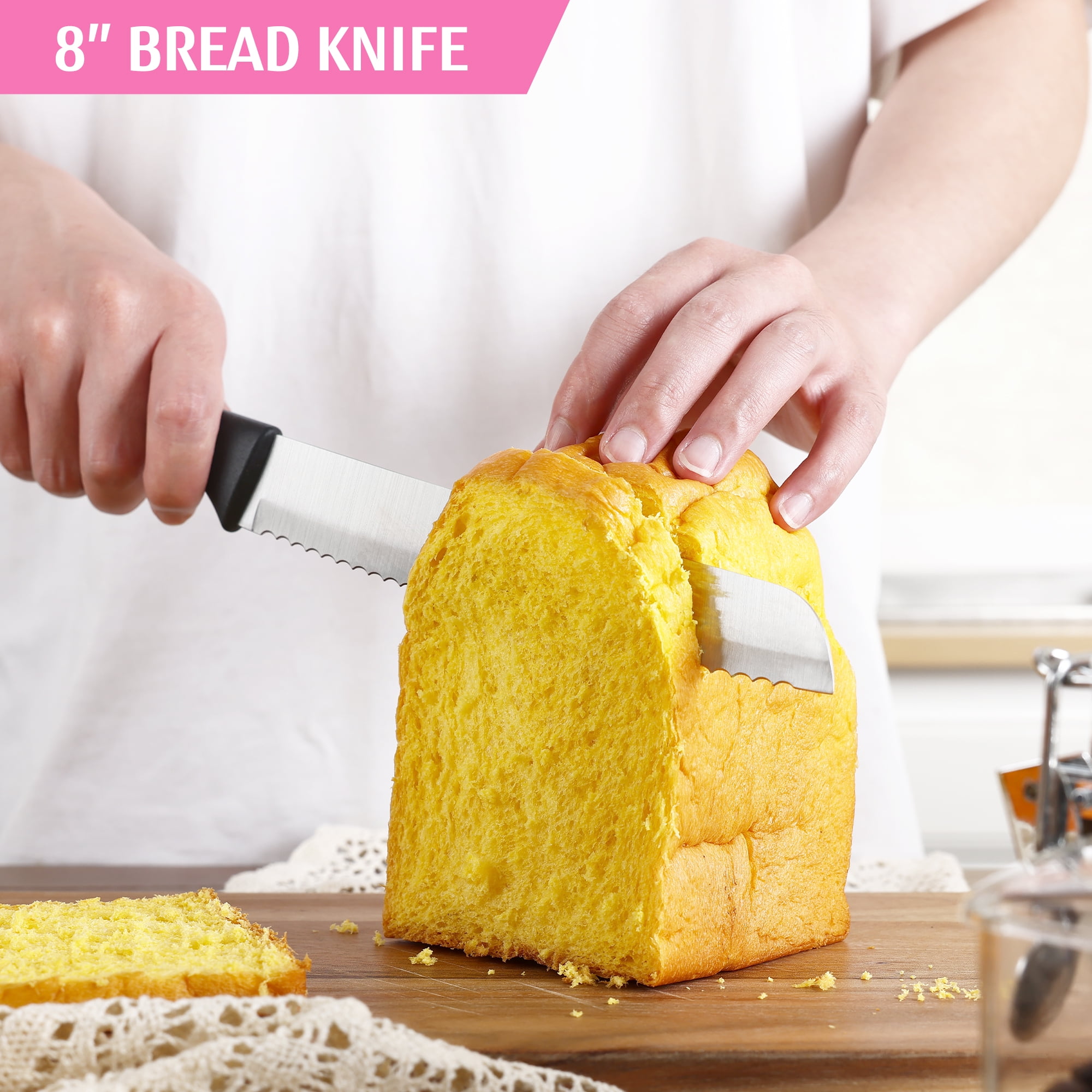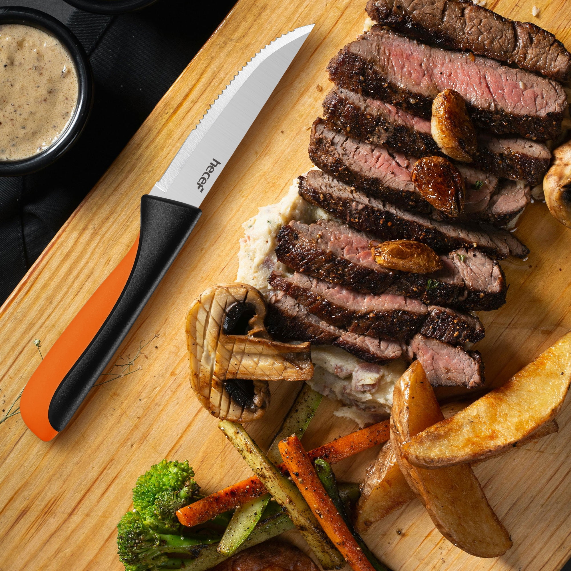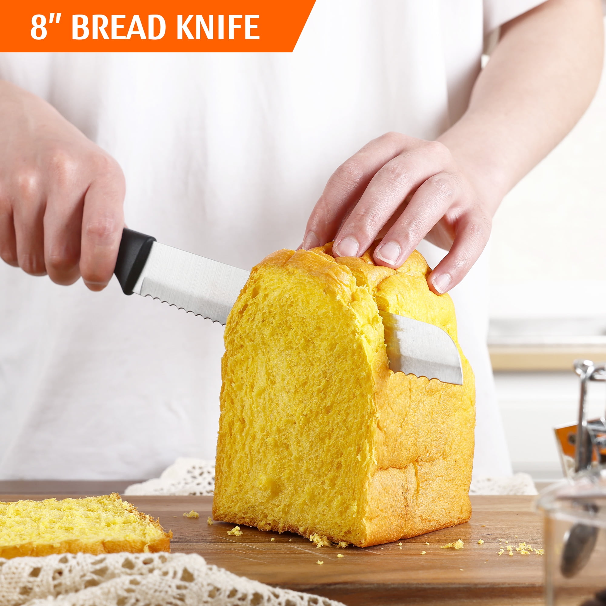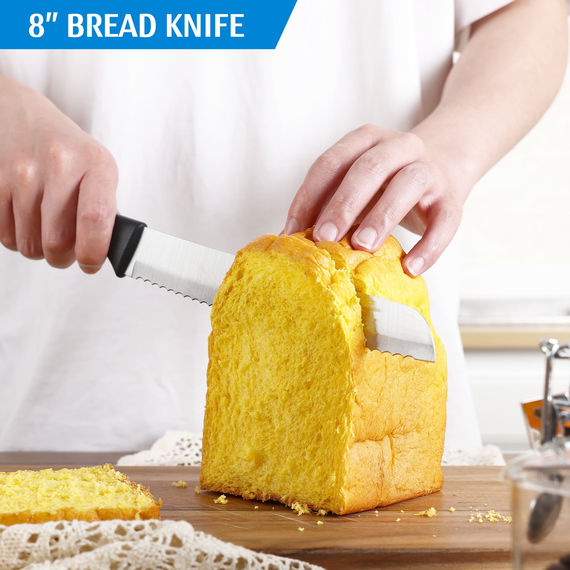 Comprehensive Set: 13-piece knife set includes an 8-inch chef knife, 8-inch cutting knife, 8-inch bread knife, 5-inch utility knife, 3.5-inch paring knife, 6 pieces of 4.5-inch steak knives, and multi-purpose kitchen scissors.