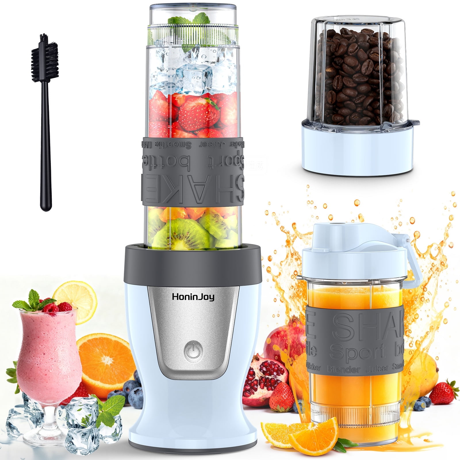 🛒Upgrade your family’s daily nutrition with the HoninJoy Portable blender—a compact and powerful kitchen companion designed for modern, on-the-go families! With its new upgrade 650W motor and two specialized blades, this compact machine effortlessly crushes ice, pulverizes fibrous greens, and grinds nuts in seconds, delivering professional results right in your kitchen. Whether you’re whipping up quick breakfast smoothies, preparing healthy school snacks, or crafting refreshing drinks for a family outing, this versatile juicer makes it effortless. It comes with two reusable sports bottles (400mL and 570mL) so you can prep your favorite drinks ahead of time and take them anywhere. The handy grinding cup expands your options even further, letting you freshly grind coffee beans for morning brew, chop nuts for baking, or blend homemade food in minutes.