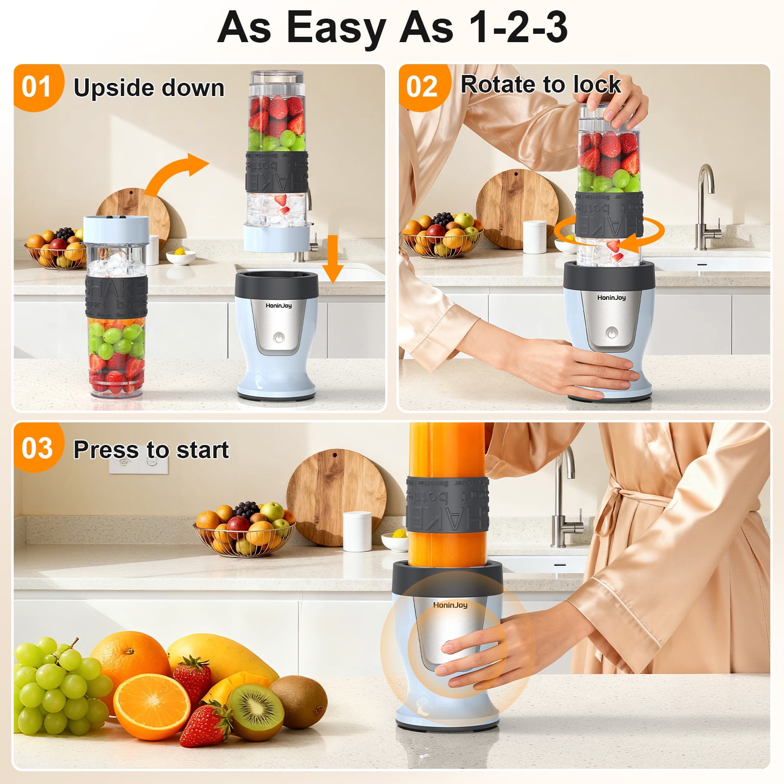 Cleaning up is just as easy as making these delicious creations! All detachable parts are dishwasher-safe, making post-use cleanup a snap for busy households. Durable, family-friendly, and designed for everyday use, the HoninJoy Portable Juicer helps you serve fresh, wholesome meals and drinks without the fuss. Give your family the gift of health and convenience—add it to your cart today and make every day fresher!