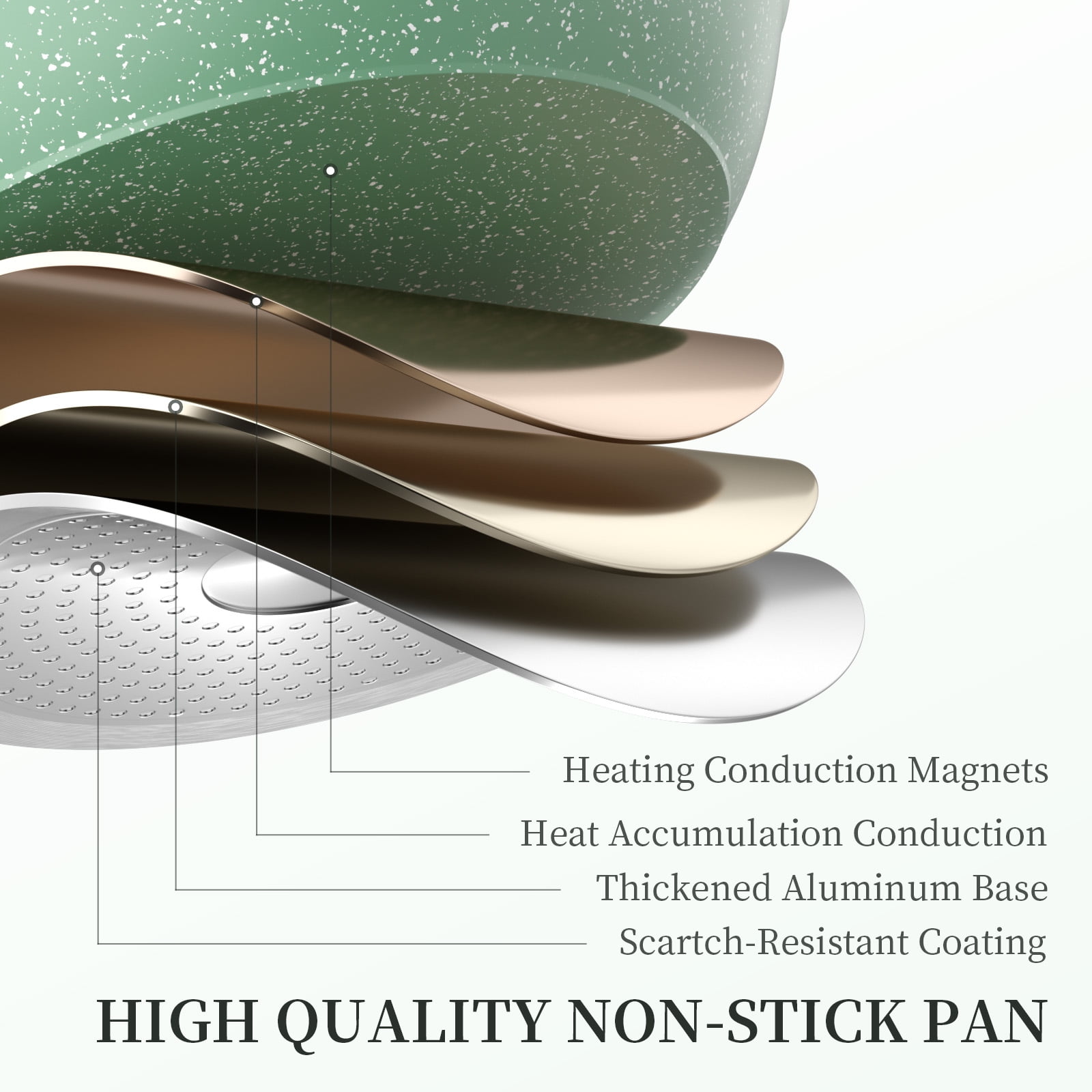 Fast Heating: High magnetic conductive base made of three-layer aluminum heats quickly and evenly, suitable for various stoves.