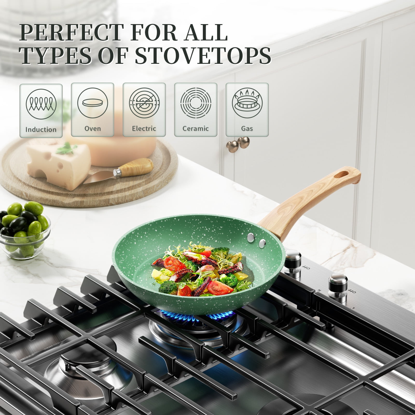 Fast-heated Base & Wide Fit – The high magnetic conductive base of omelette pan made of three-layer superior aluminum heats quickly and evenly, increases durability, and never warps. Safe up to 180°c/356°f. Non stick skillet is suitable for various stoves, like induction, gas, halogen, electric and ceramic stovetops.