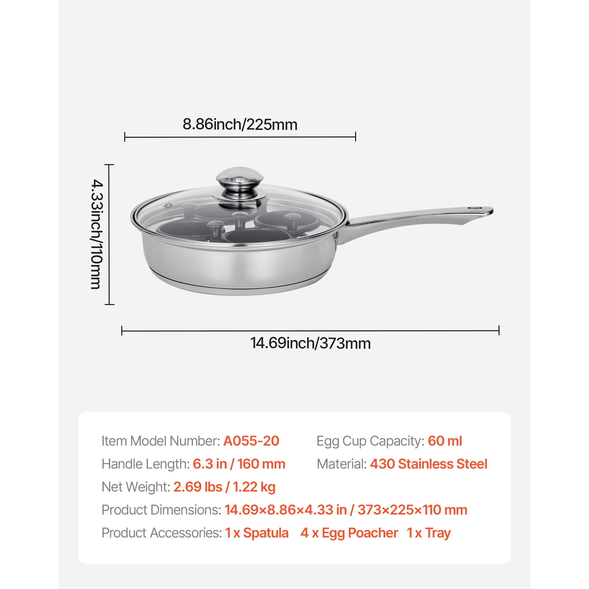 - Simplify Your Cooking: Featuring four spacious 60 ml egg cups, this poaching pan securely holds large eggs without spilling. It allows you to cook up to four poached eggs simultaneously, streamlining your breakfast preparation and catering to your family’s morning routine.