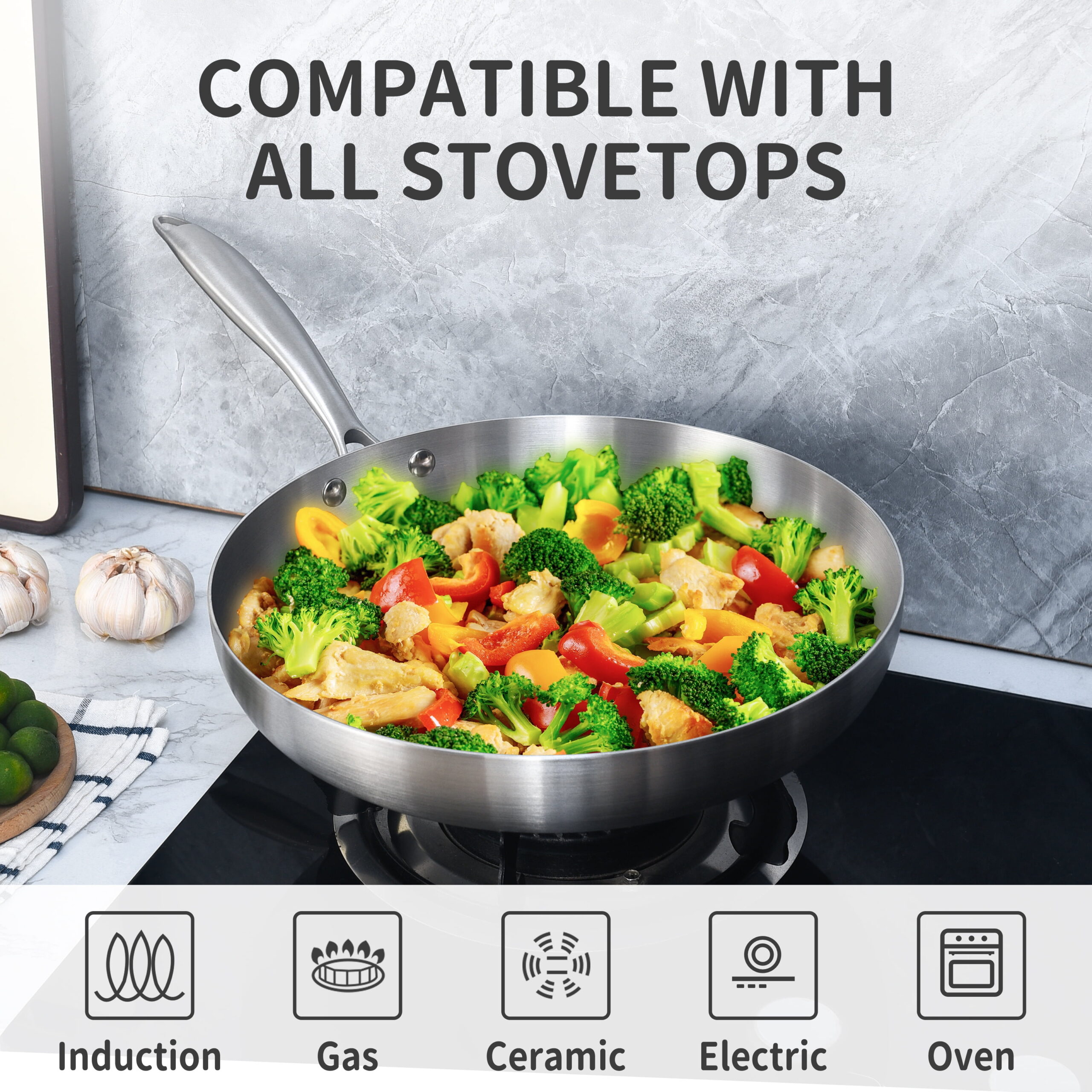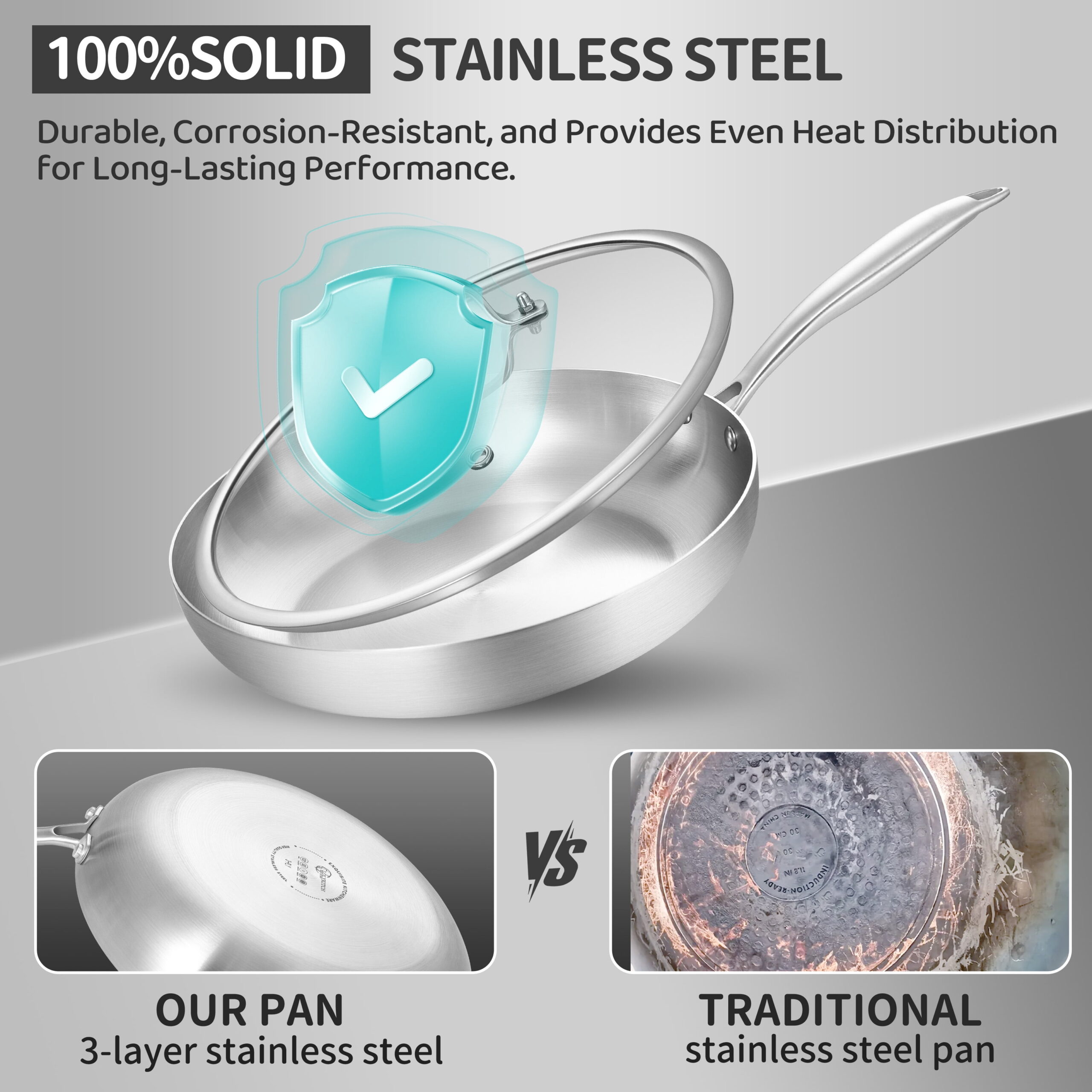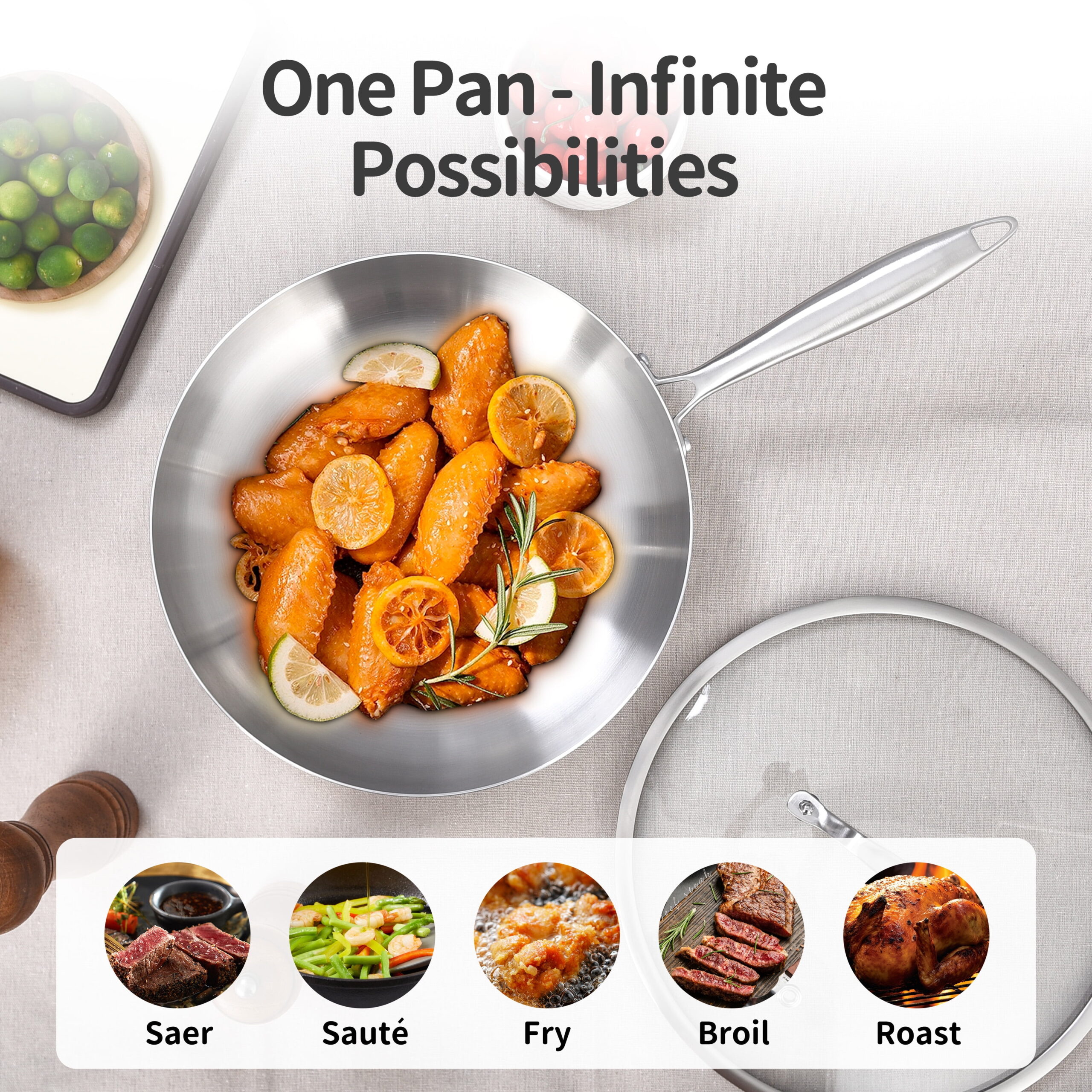 Durable Construction: Features a tri-ply clad design with a pure aluminum core bonded between two layers of durable stainless steel, ensuring excellent durability and even heat distribution.