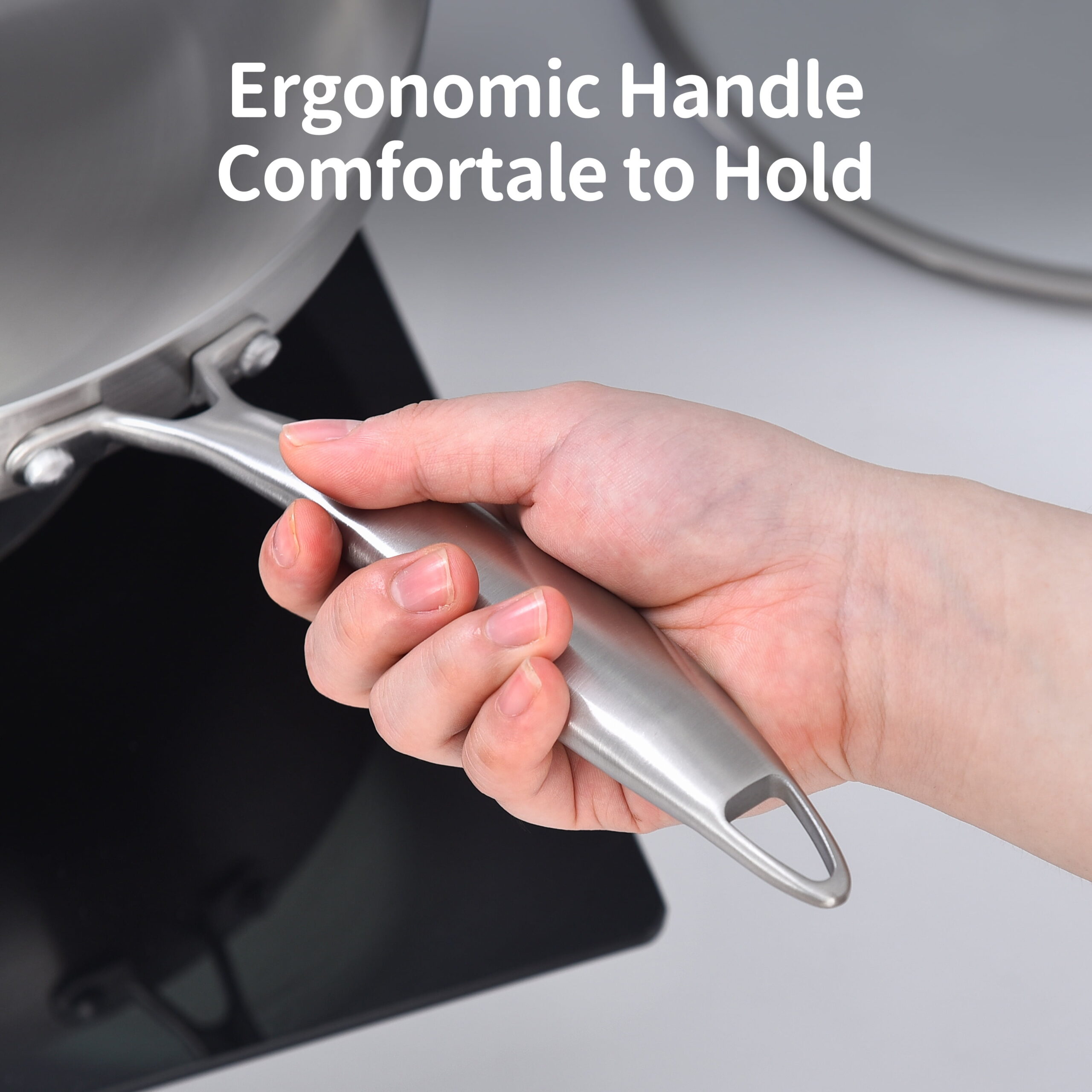 【Tri-Ply Clad】Made with a high pure aluminum core bonded together with 2 layers of durable stainless steel, excellent durability and even heat distribution,saved energy more than 20%.