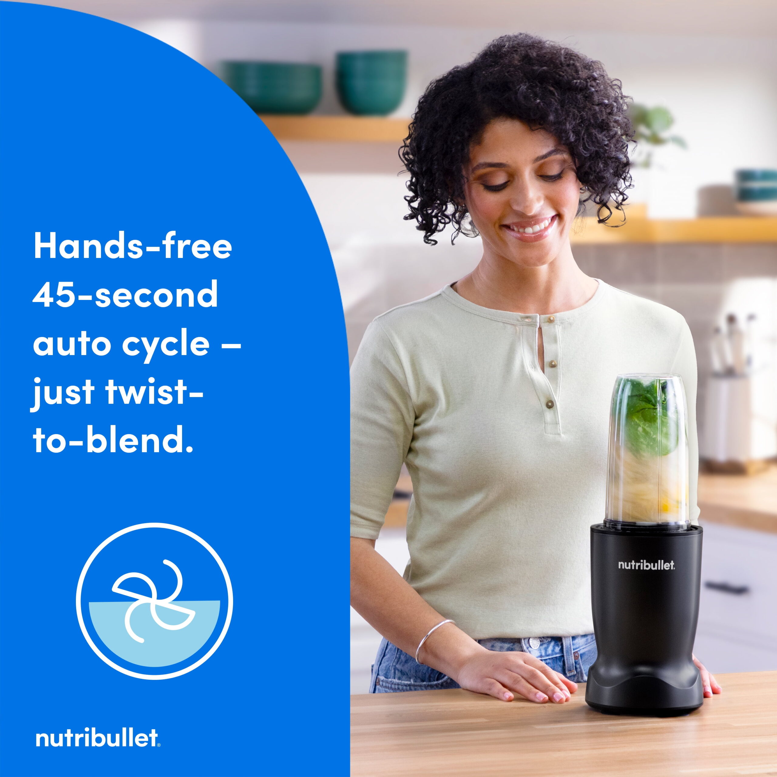 - Automated Operation: Includes a 45-second hands-free auto cycle; simply twist the cup onto the base for automated blending.
