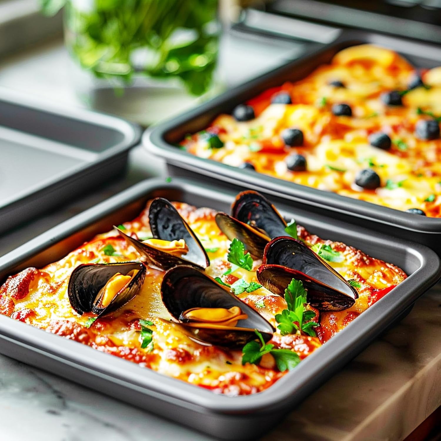 ✔SPACE-SAVING DESIGN – the stackable wide tray pan design of each piece from our bakeware set not only saves precious cabinet space but keeps your kitchen organized and ready for your next baking session. Our baking set pans are a stylish and attractive addition to any kitchen