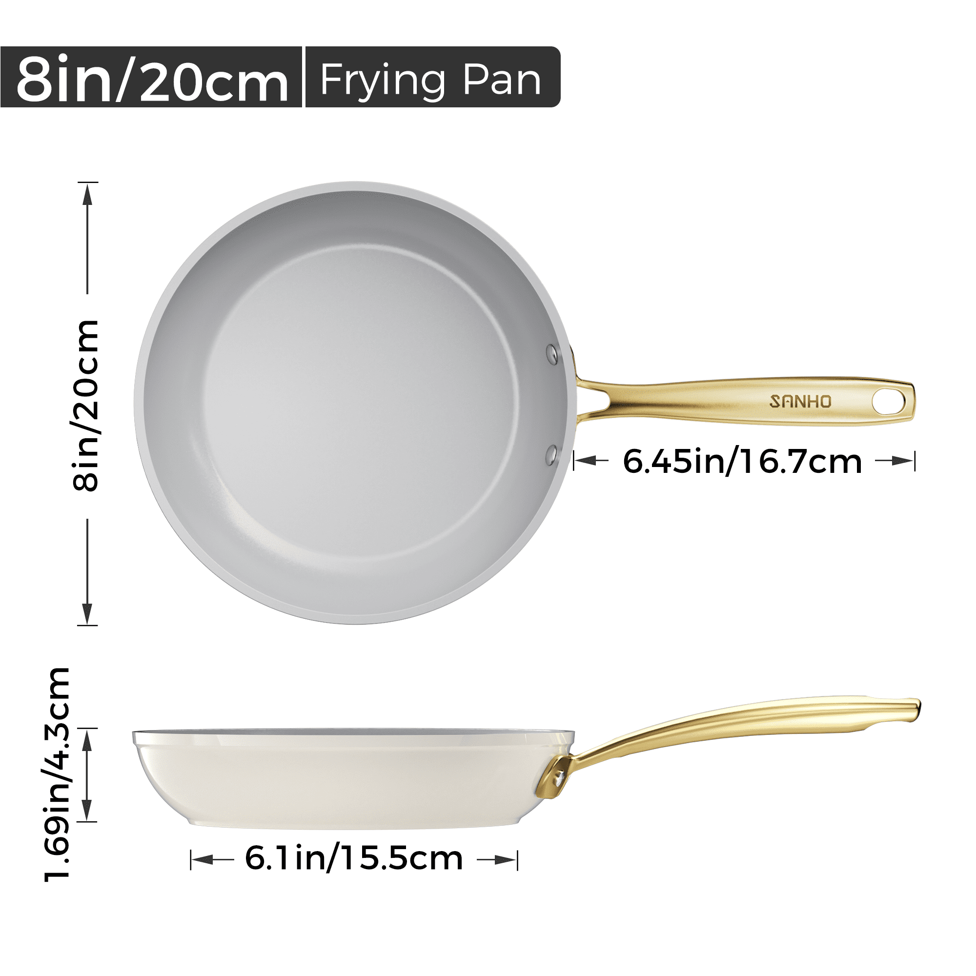 Sanho Ceramic Nonstick Fry Pan Skillet 8 inch, Diamond-Titanium Coating, Oven & Induction Safe 500°F, Non-Toxic, Dishwasher Safe