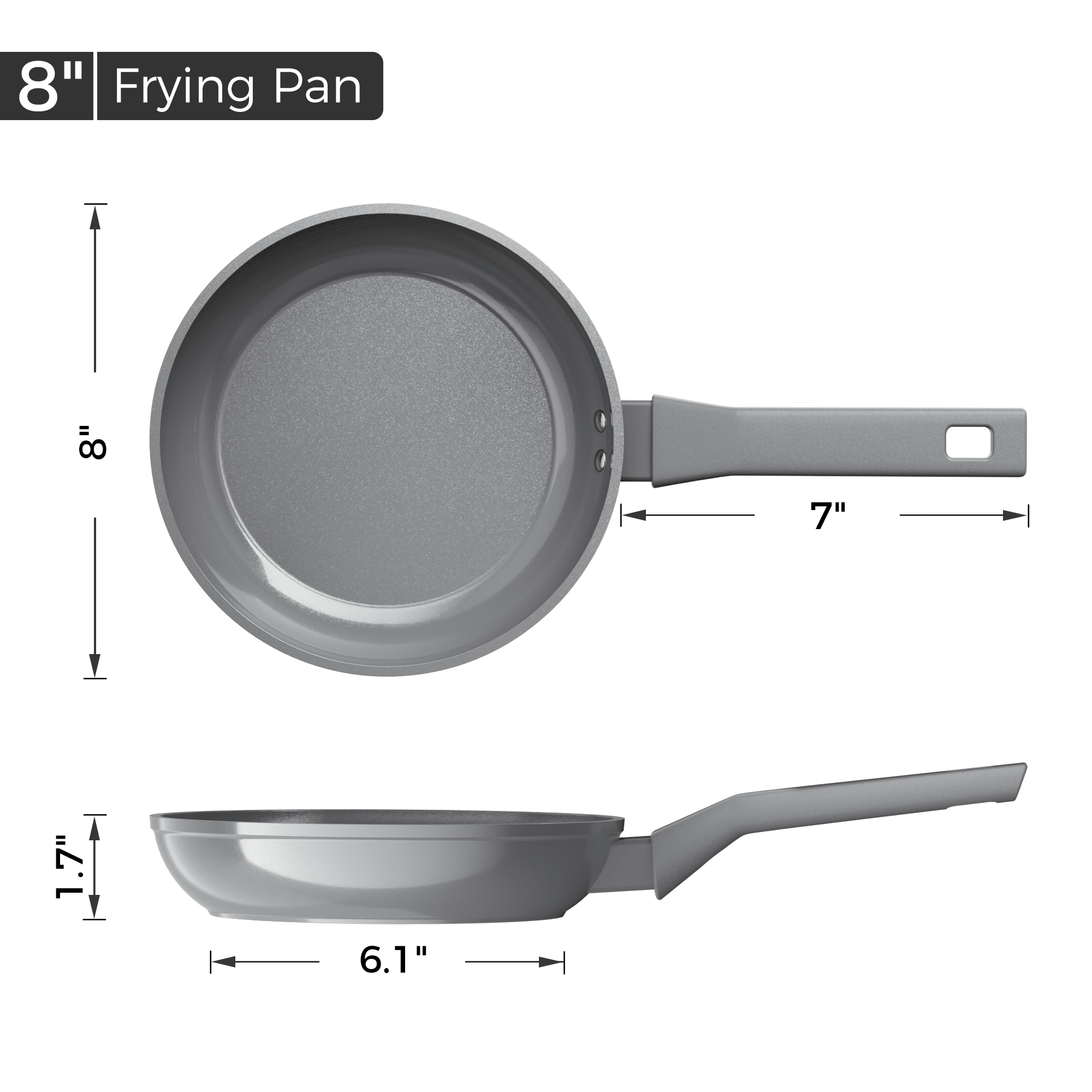 - 【Perfect Size for Everyday Meals】 This 8 inch non stick frying pan is the ideal size for individual portions. Whether you’re frying a single egg, making a grilled cheese sandwich, or preparing a quick breakfast, its compact size heats up fast and is easy to maneuver. It’s the essential fry pan for dorms, apartments, or as a supplement to your existing cookware set.