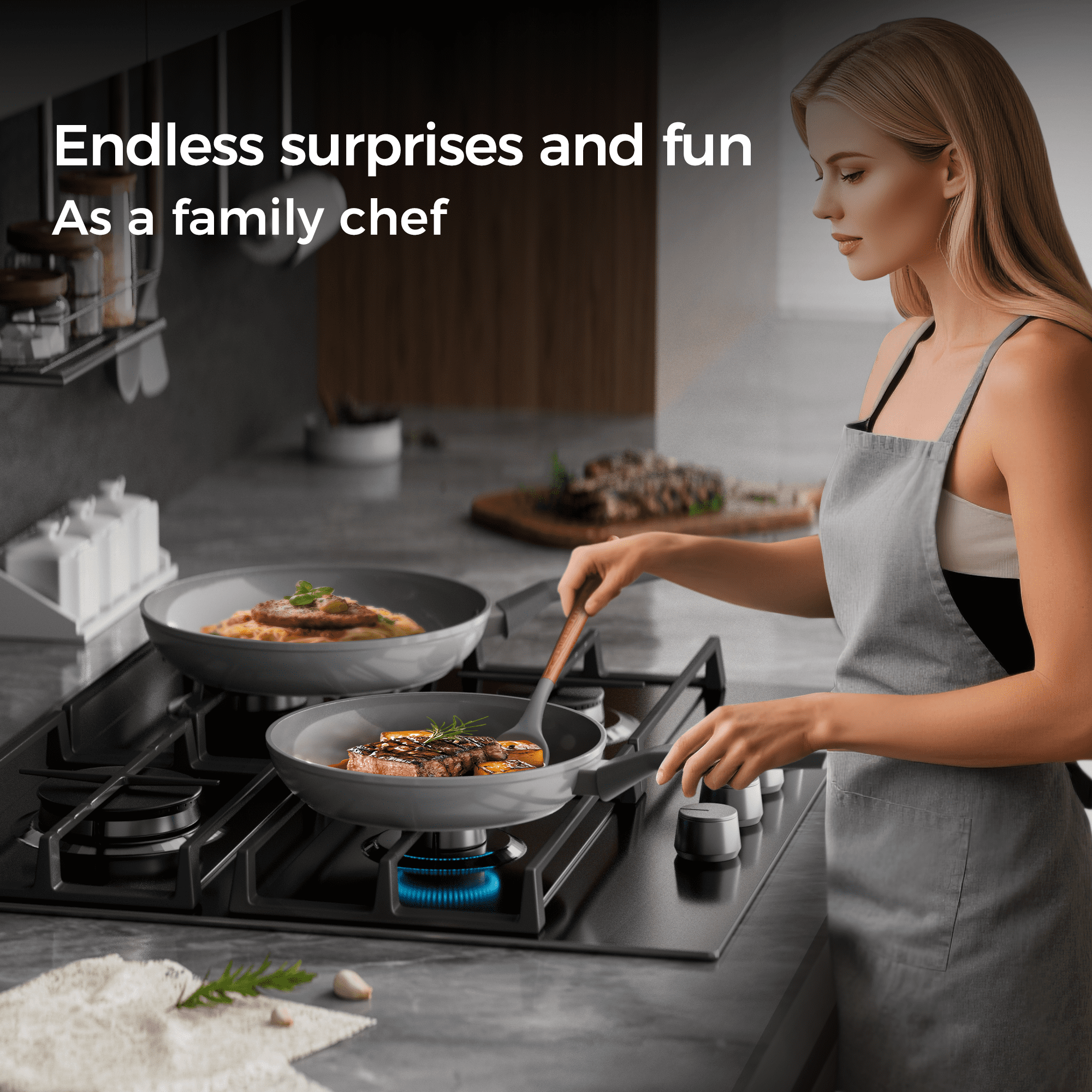 - 【Health-Conscious & Toxin-Free Cookware】 Your family’s health is our priority. This nonstick frying pan features a premium ceramic coating that is completely healthy and toxin-free. Unlike traditional nonstick coatings, our healthy ceramic surface provides complete peace of mind, ensuring your meals are cooked safely and naturally.