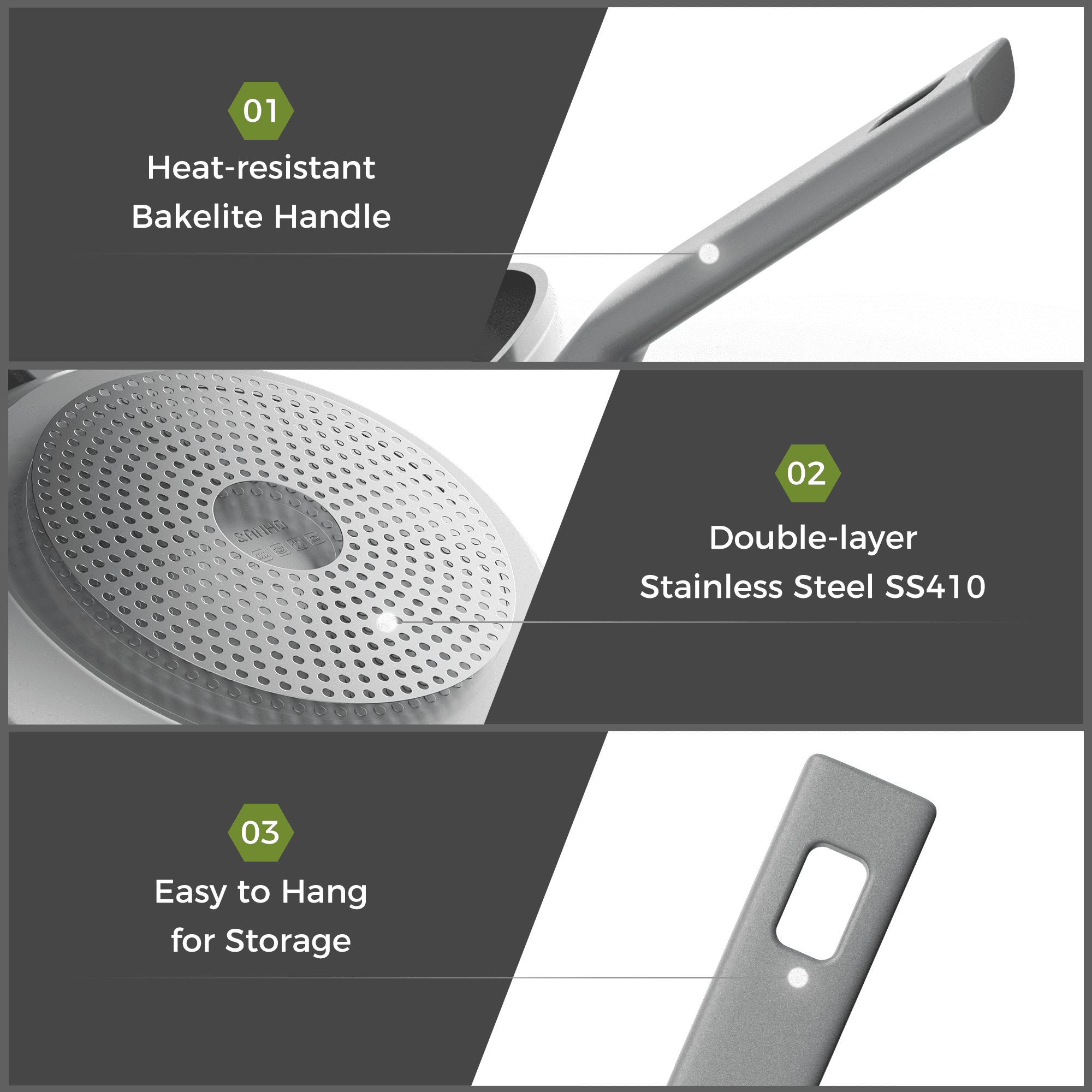 - 【Universal Compatibility & Cool-Touch Handle】 Crafted for rapid and even heat distribution, this nonstick skillet eliminates hot spots for perfect cooking results. The induction-ready base makes it compatible with all cooktops, including gas, electric, ceramic, and induction. The ergonomically designed bakelite handle is riveted for strength and designed to stay cool on the stovetop, ensuring a safe and comfortable grip every time you cook. (Note: Not oven safe.)