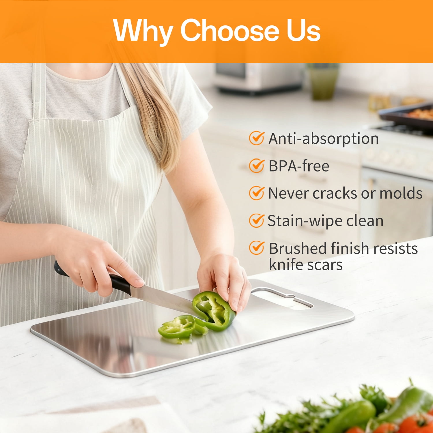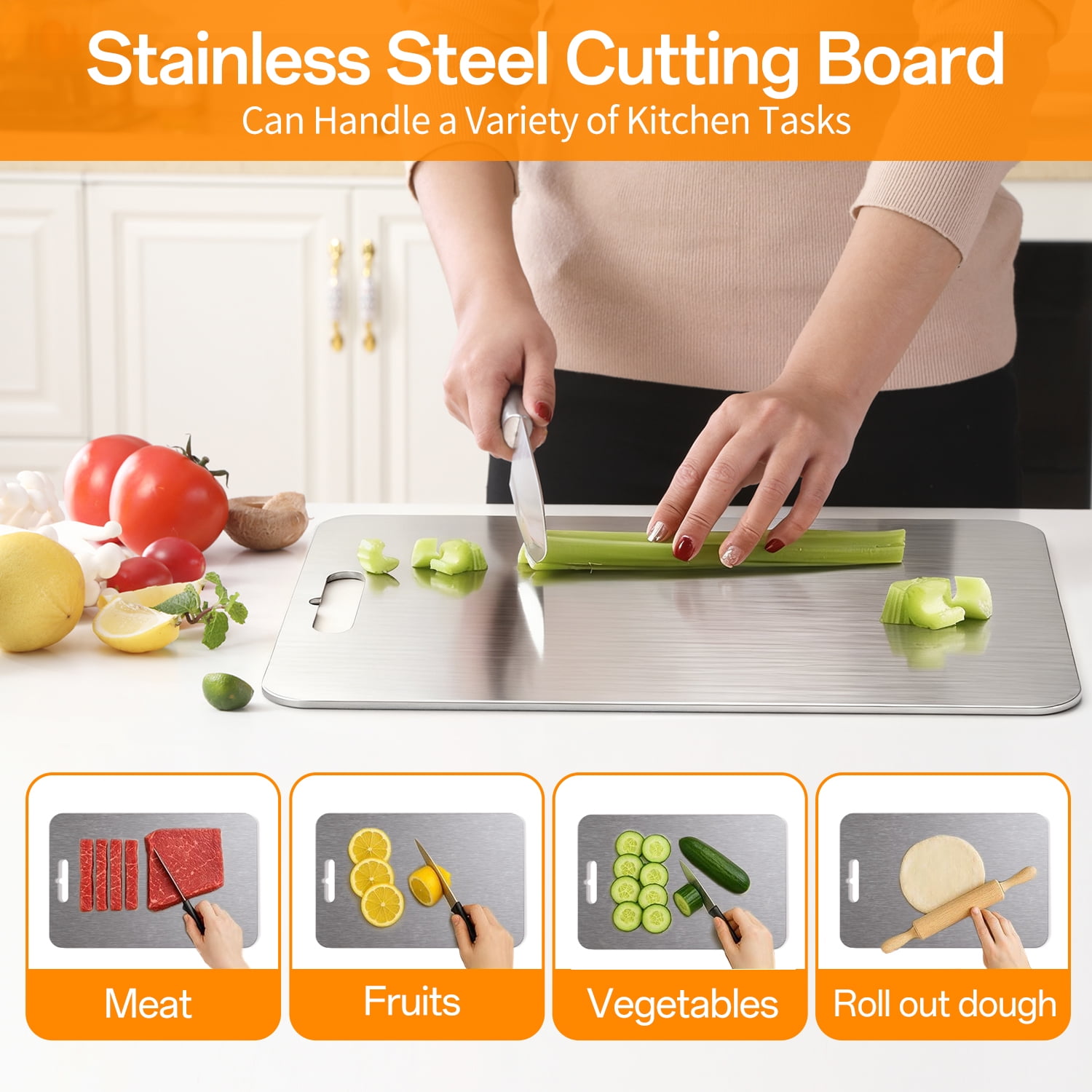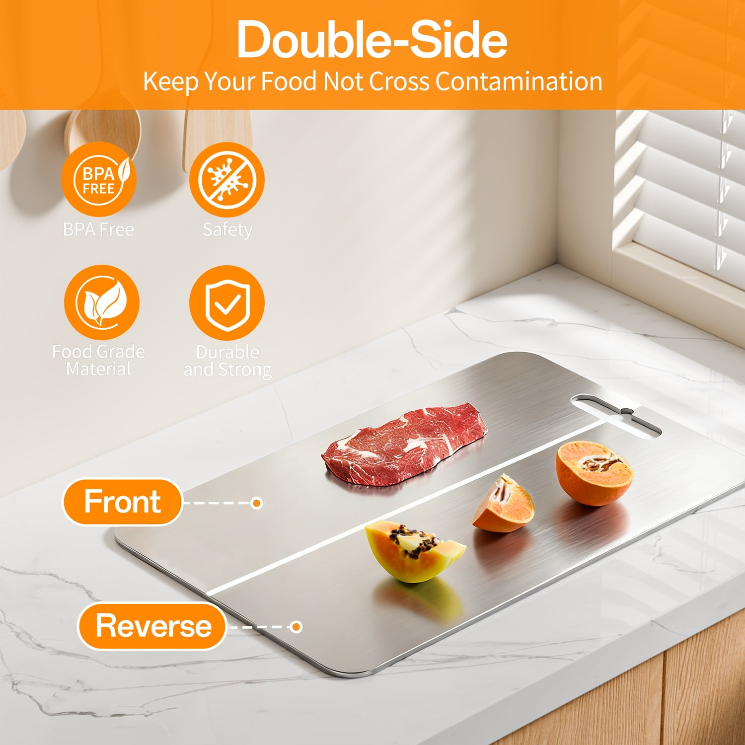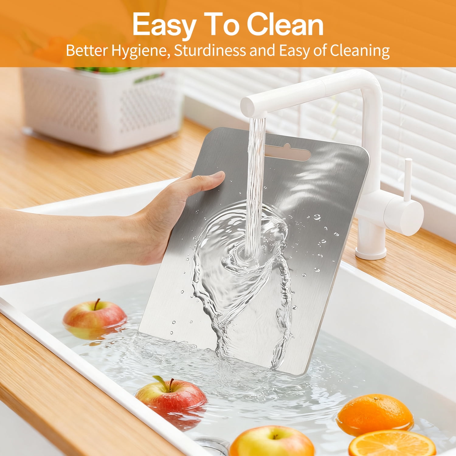 • Premium Stainless Steel:Made of high-quality stainless steel, stronger and safer than wood or plastic boards—no splinters, cracks, or chips.
