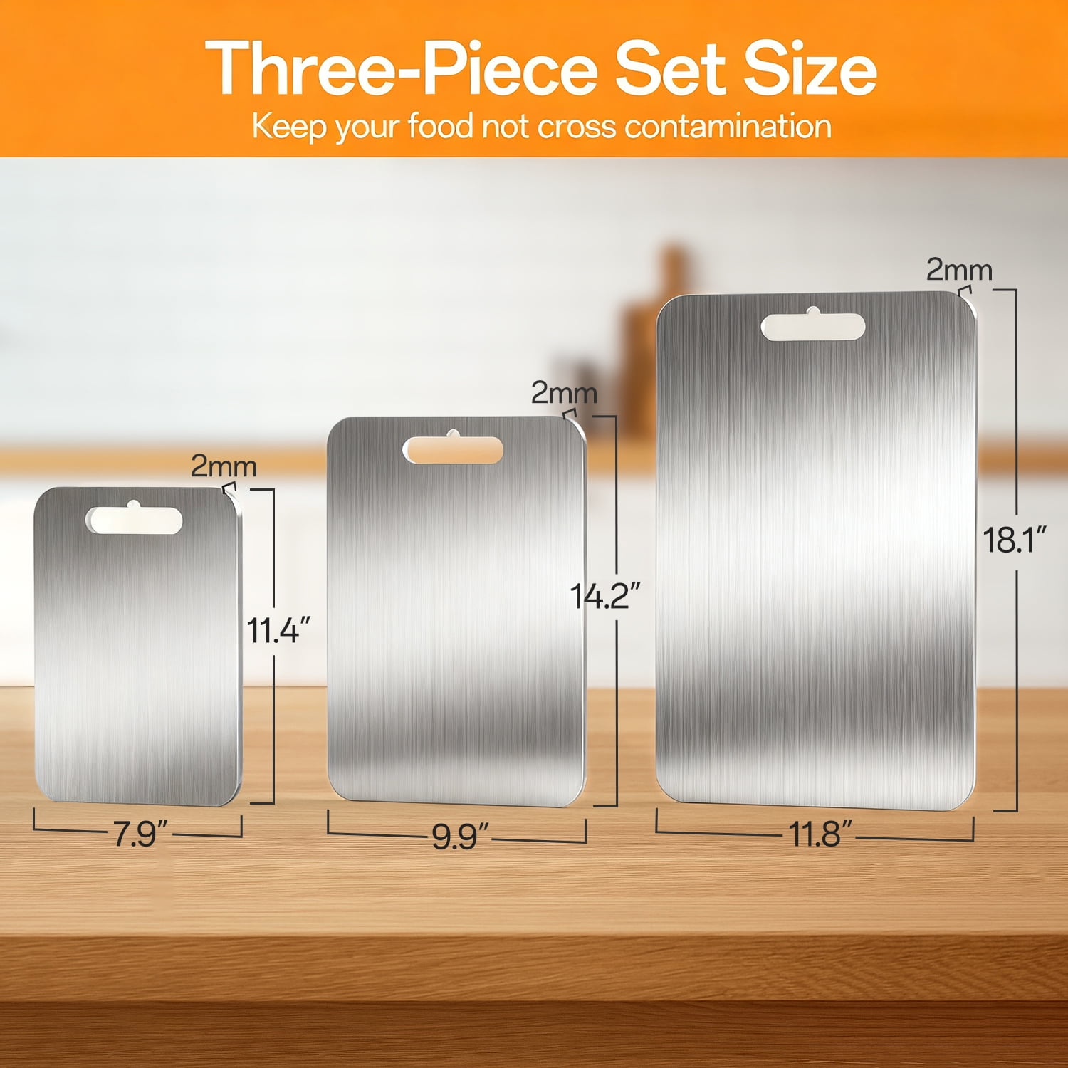 TINANA 3 PCS Stainless Steel Cutting Board for Kitchen (S+M+L), Durable, Hygienic and Dishwasher Safe