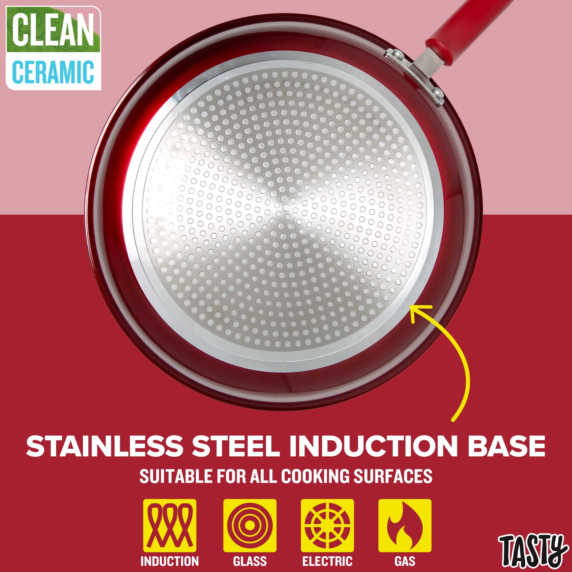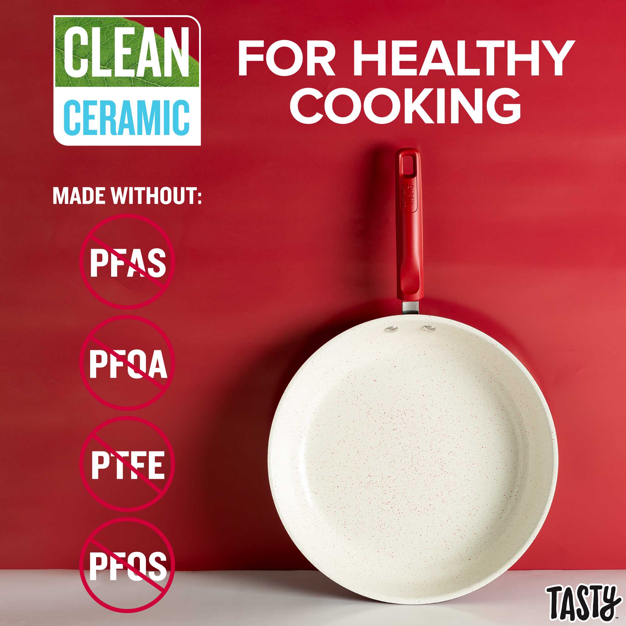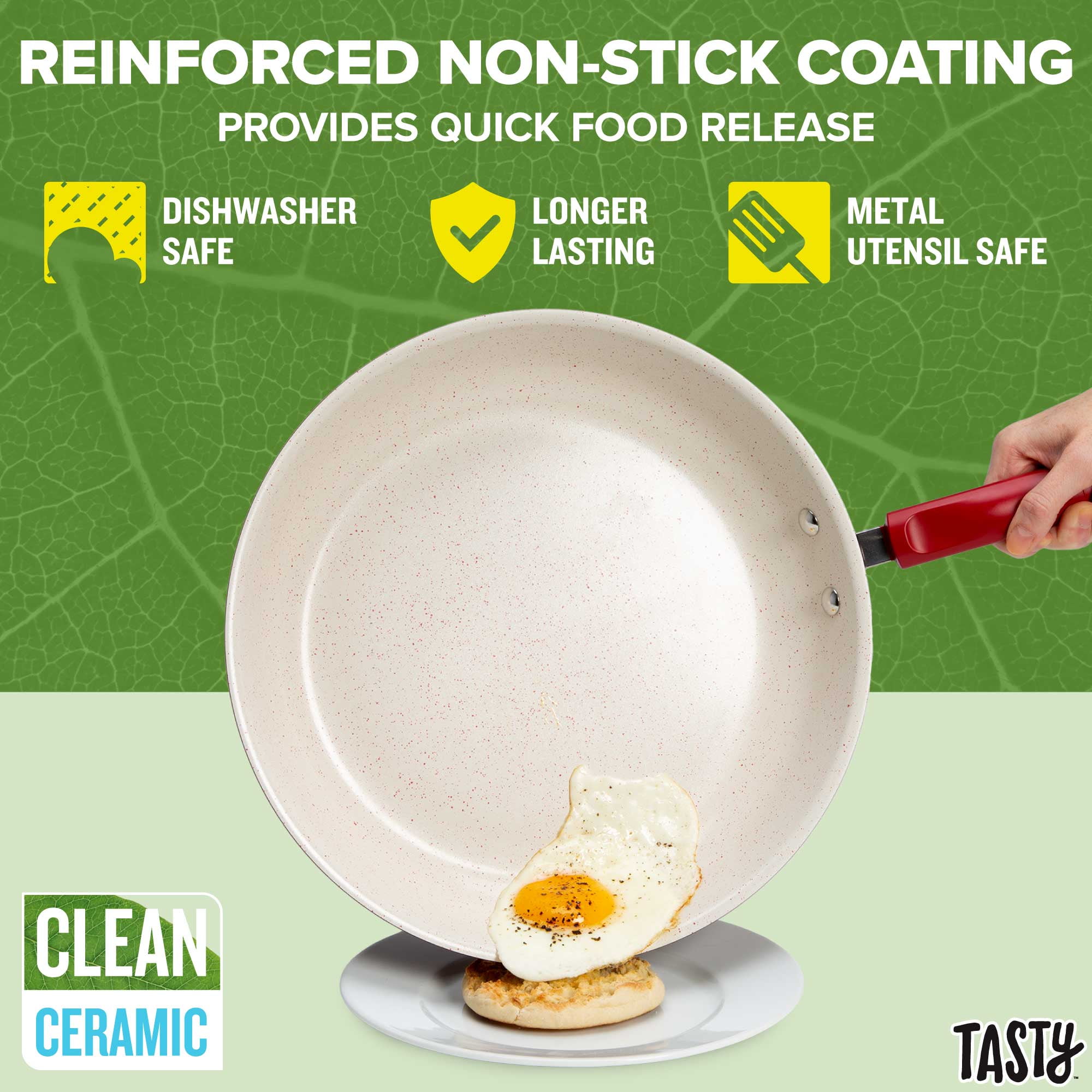 - Premium Non-Stick Coating: This pan features a reinforced Clean Ceramic non-stick coating that allows food to easily slide out of the pan.