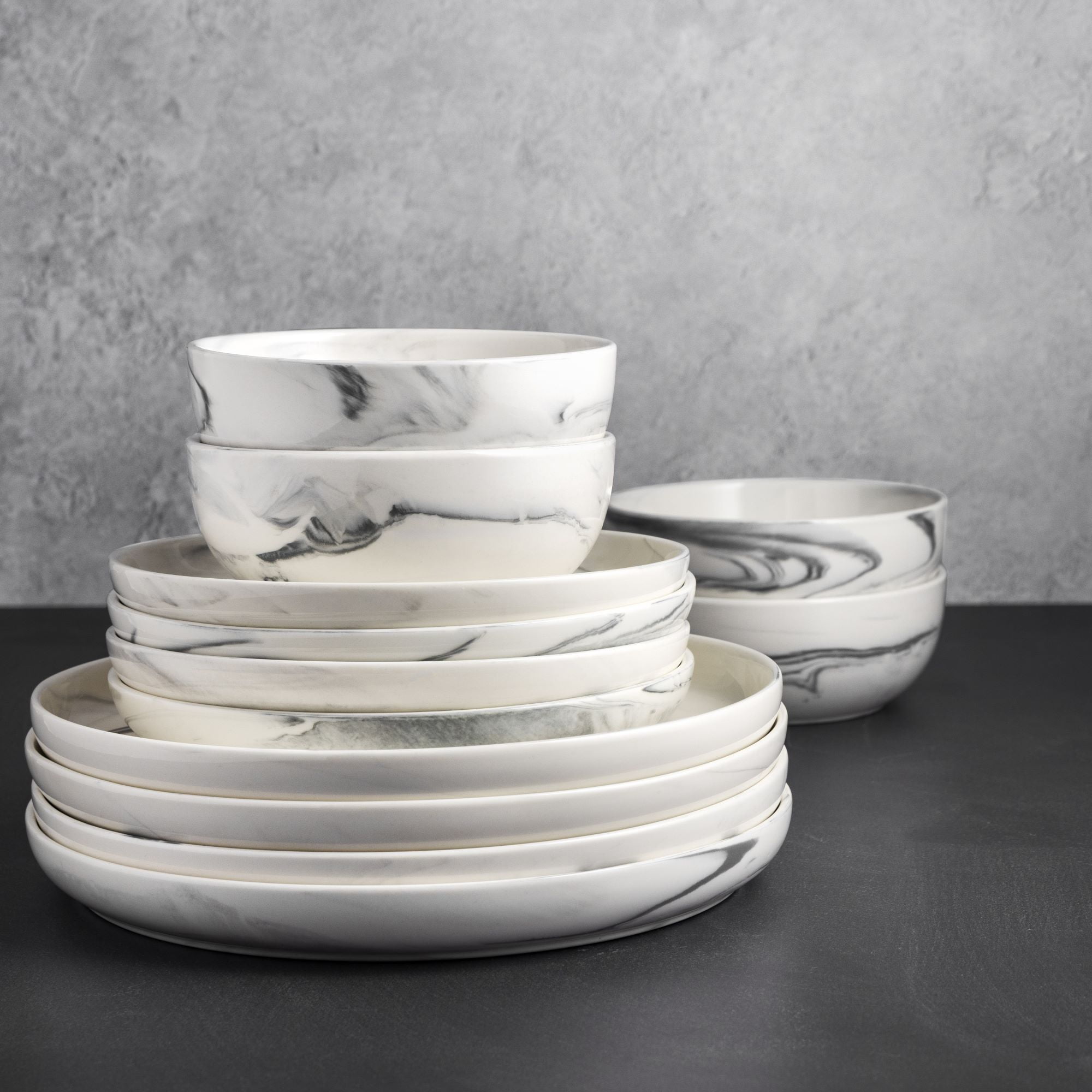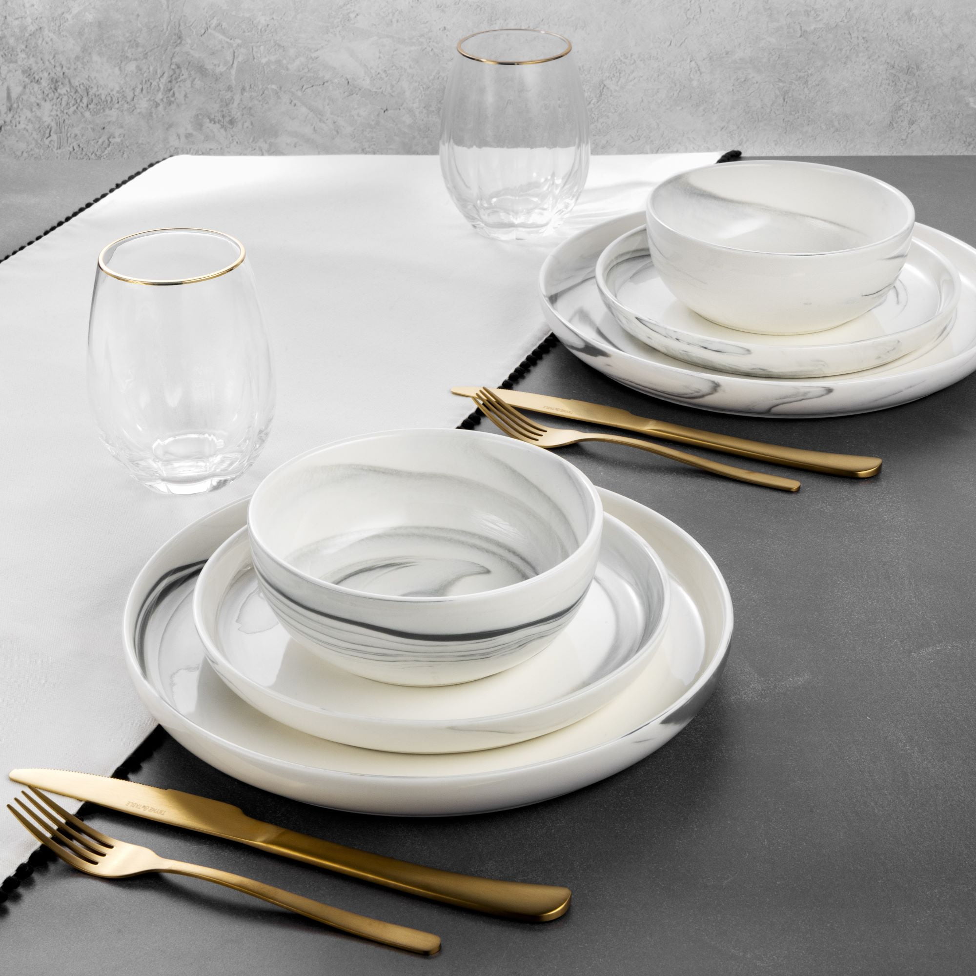 - Thyme & Table Grey Marble 12-Piece Ceramic Dinnerware Set