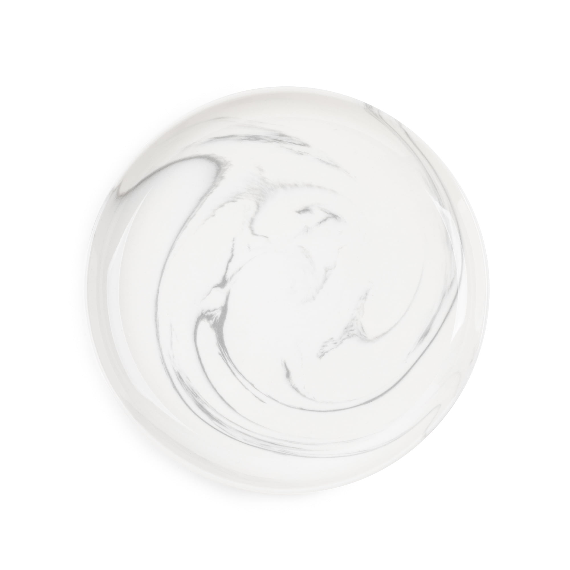- Marble-Inspired Look: Swirling grey and white design