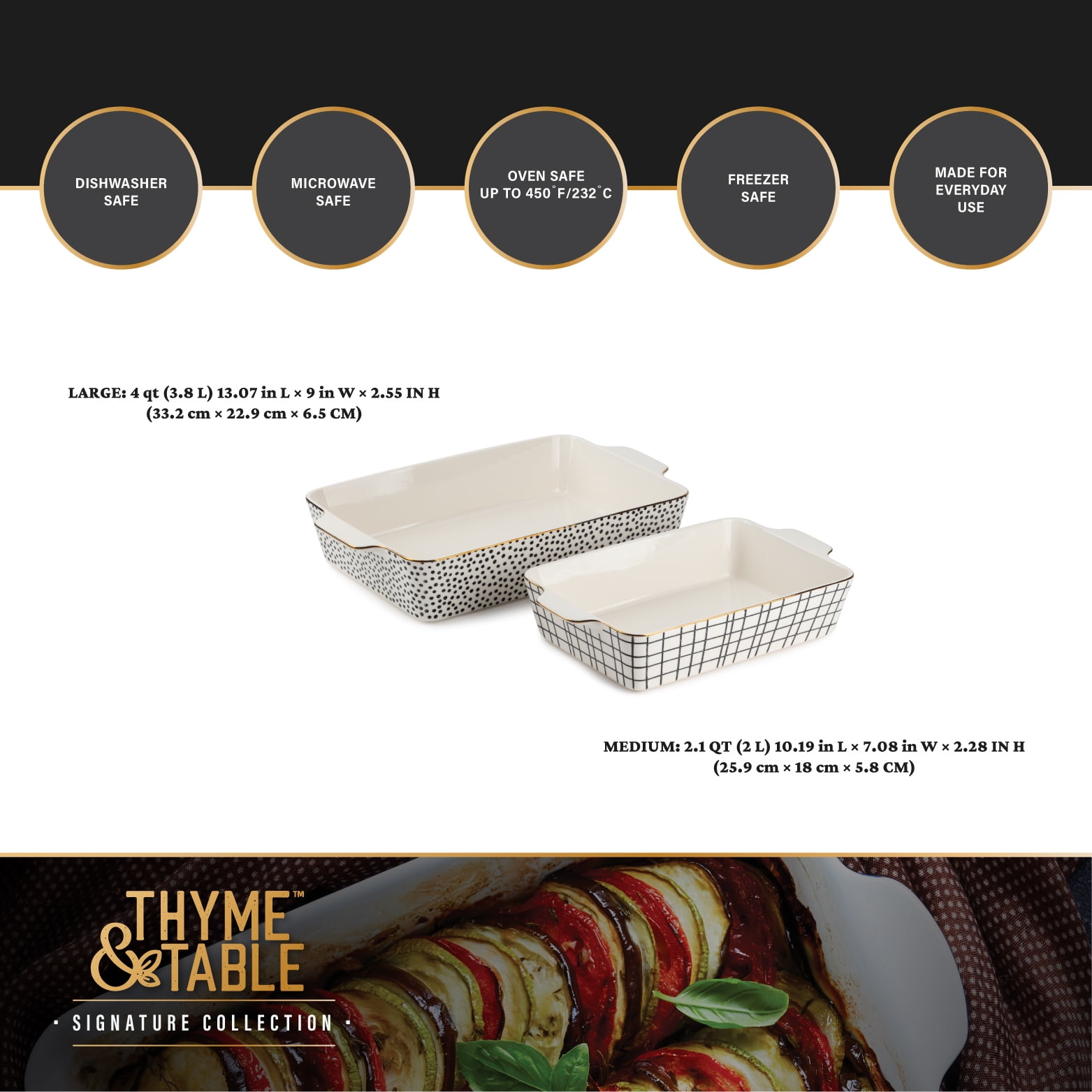 Thyme & Table 2-Piece Ceramic Rectangular Baking Dish Set – Dot
