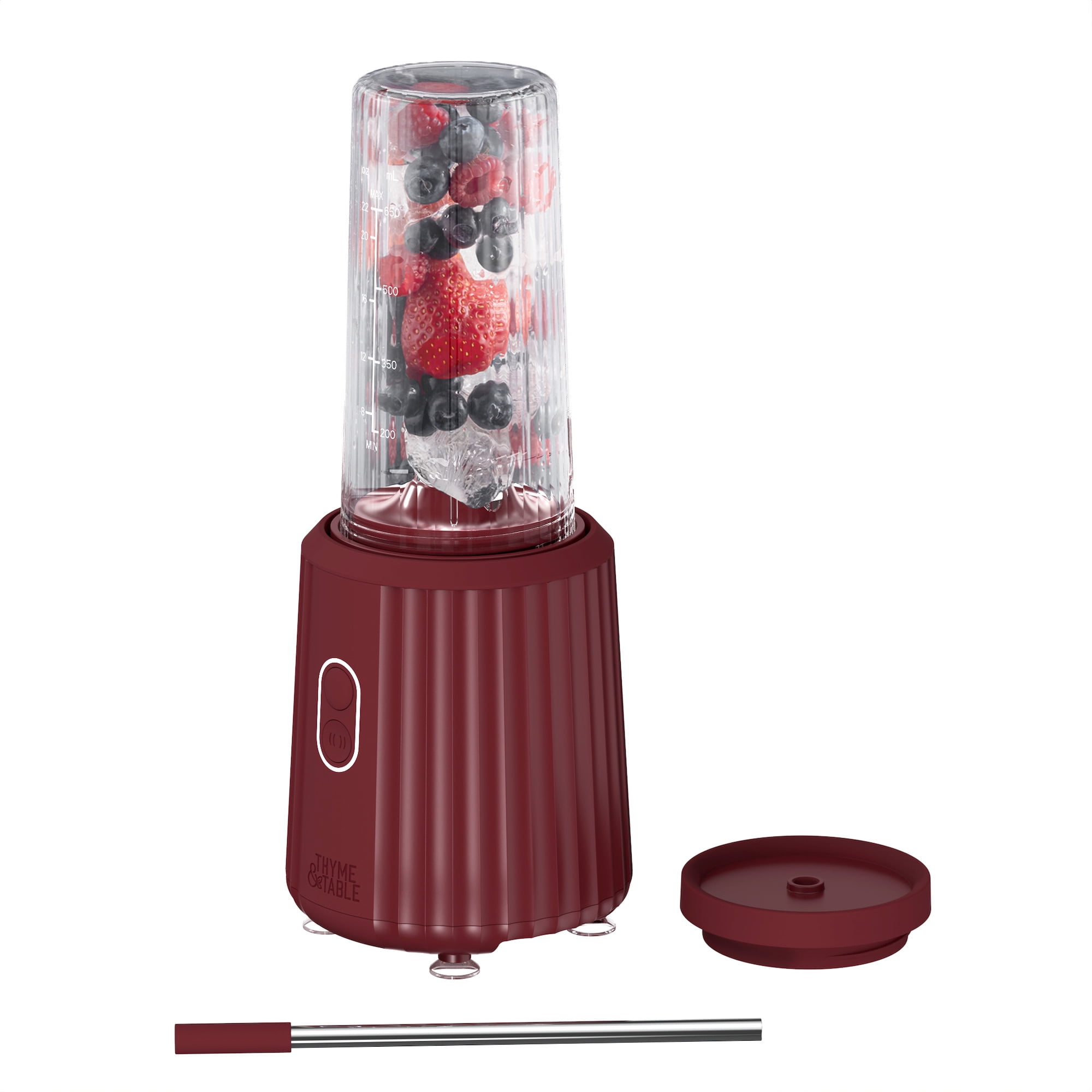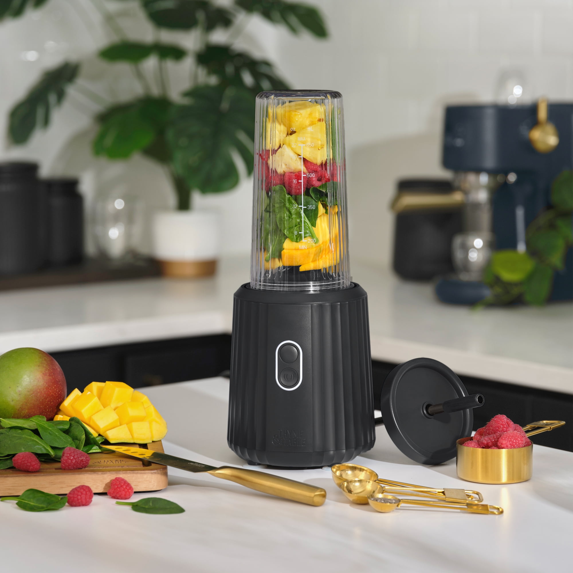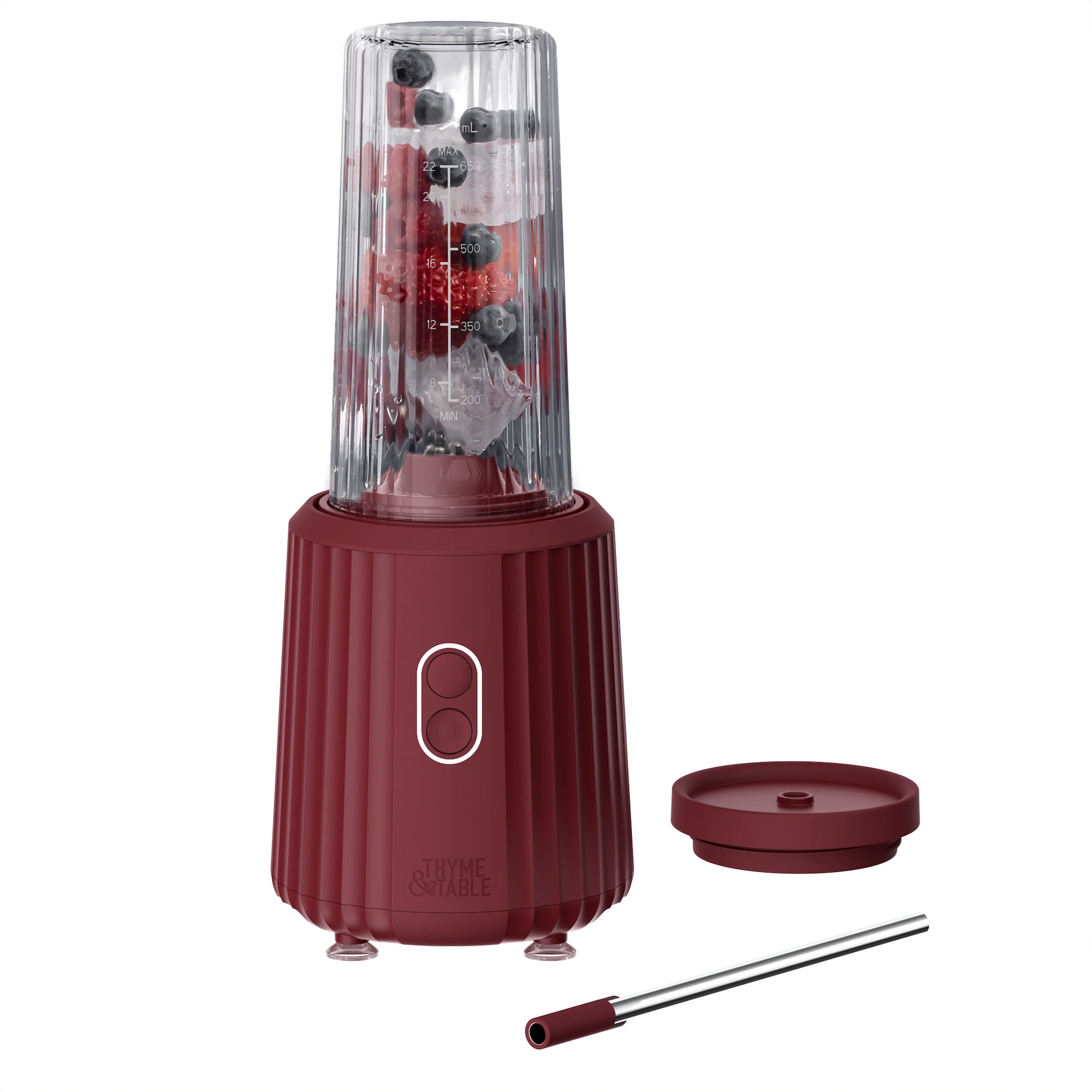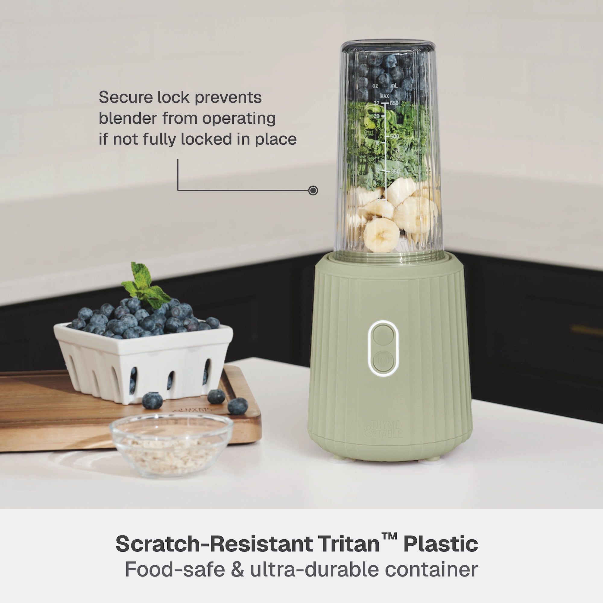 The Thyme & Table Single-Serve Blender is designed for powerful, streamlined blending in a compact, purposeful form. Driven by a high-performance 900-watt motor & a vortex blade system, it delivers smooth, consistent results for smoothies, shakes, sauces, & more. A 6-point stainless steel blade system works together to slice, dice, & crush ice & frozen ingredients with precision for efficient, consistent blending performance. A durable 25 oz Tritan™ blending cup doubles as a to-go tumbler, while the Smart Seal™ lid creates a spill-resistant seal when the straw is removed—making it easy to blend & take drinks with you. With simple controls & thoughtfully engineered details, this single-serve blender offers a refined, everyday blending experience built for modern routines. Two straightforward modes—Blend & Pulse—provide intuitive control for a variety of ingredients & textures.