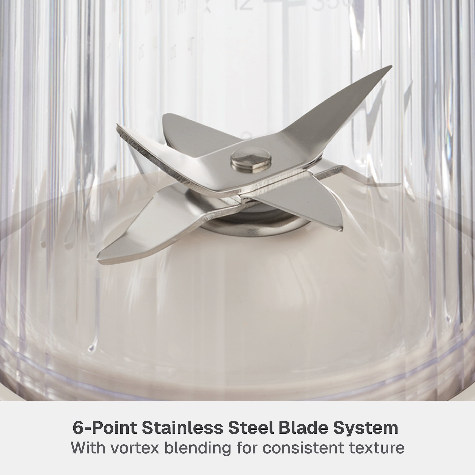 Advanced Blade System: Incorporates a 6-point stainless steel blade and vortex blending system for smooth, consistent textures and effective crushing of ice.