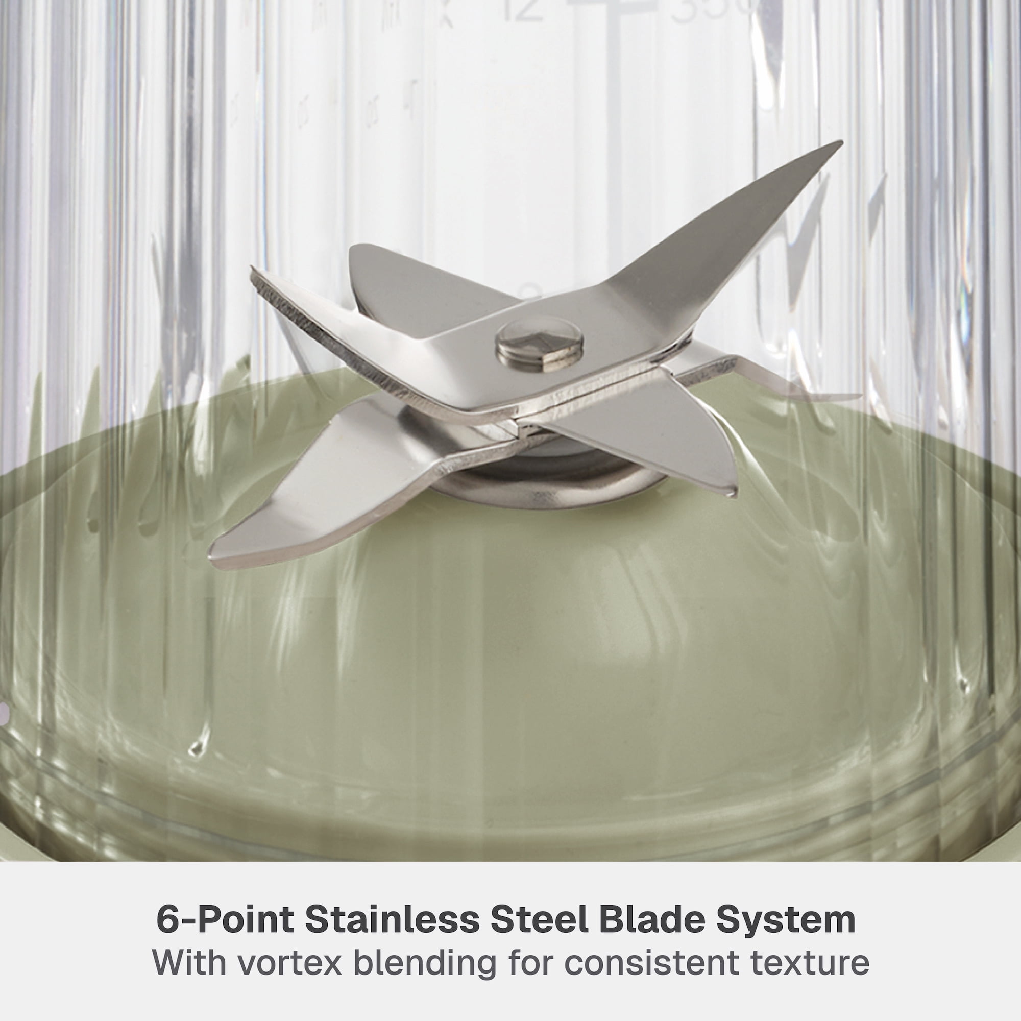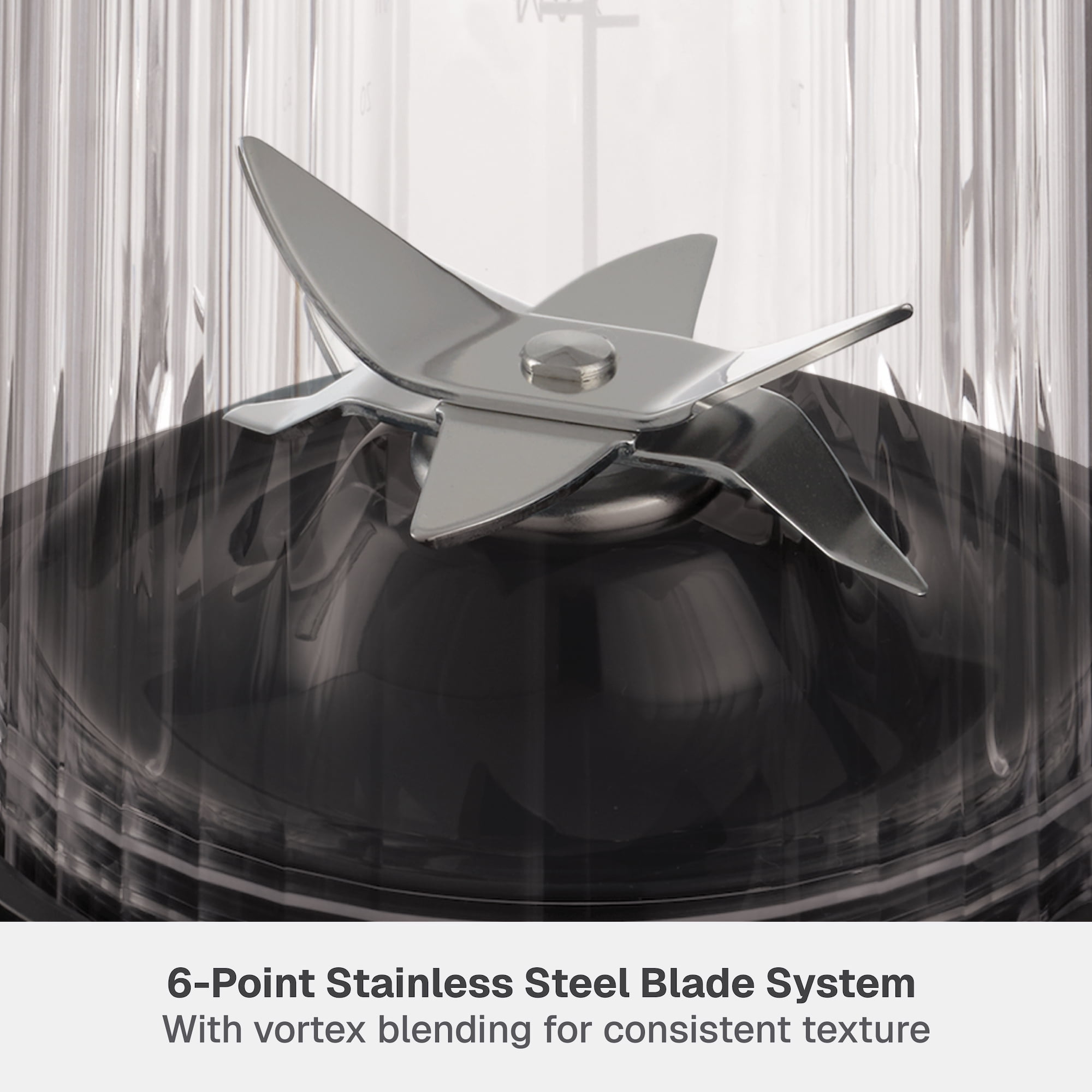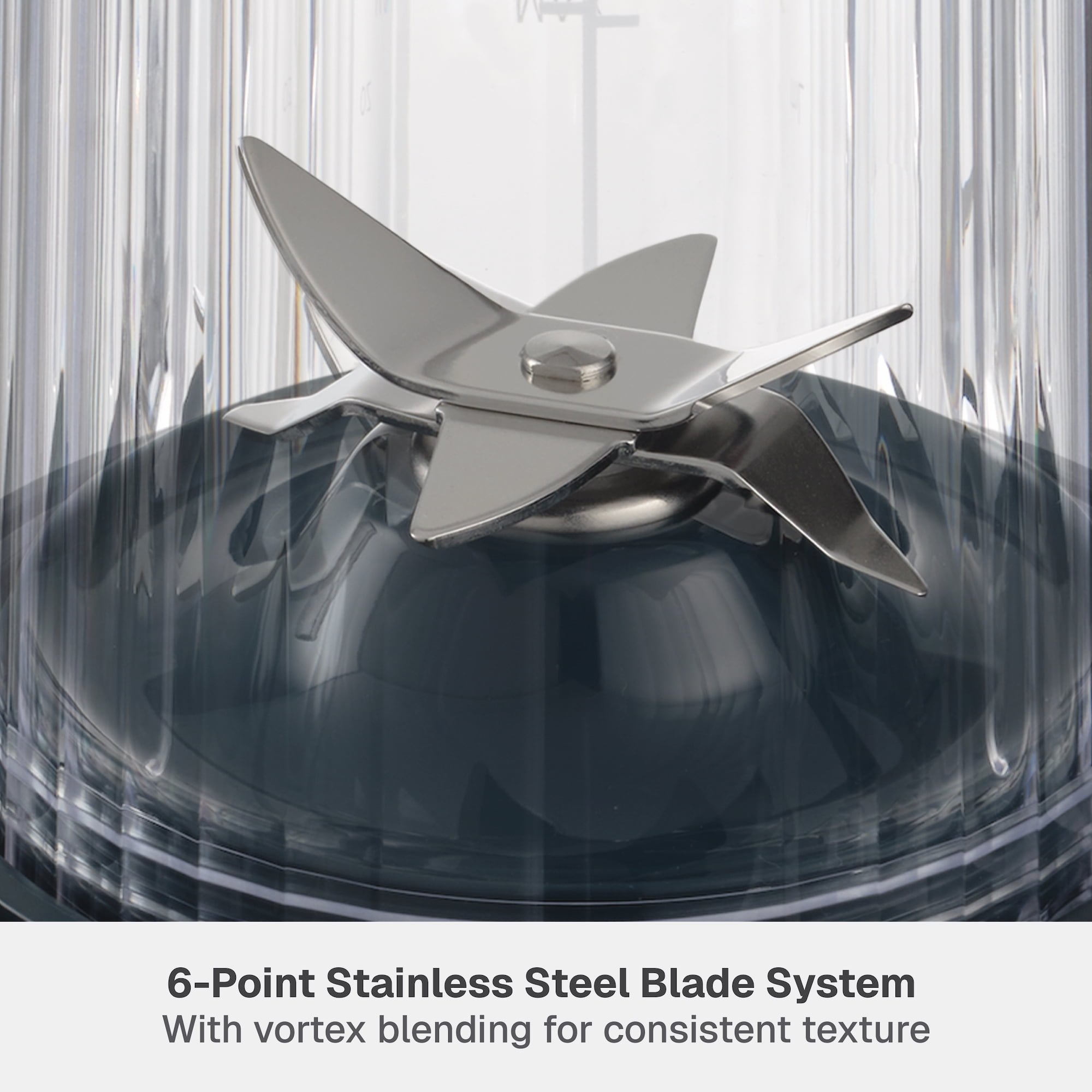 Vortex Blending System — Six-point stainless steel blade design pulls ingredients into a continuous blend for smooth, consistent texture.