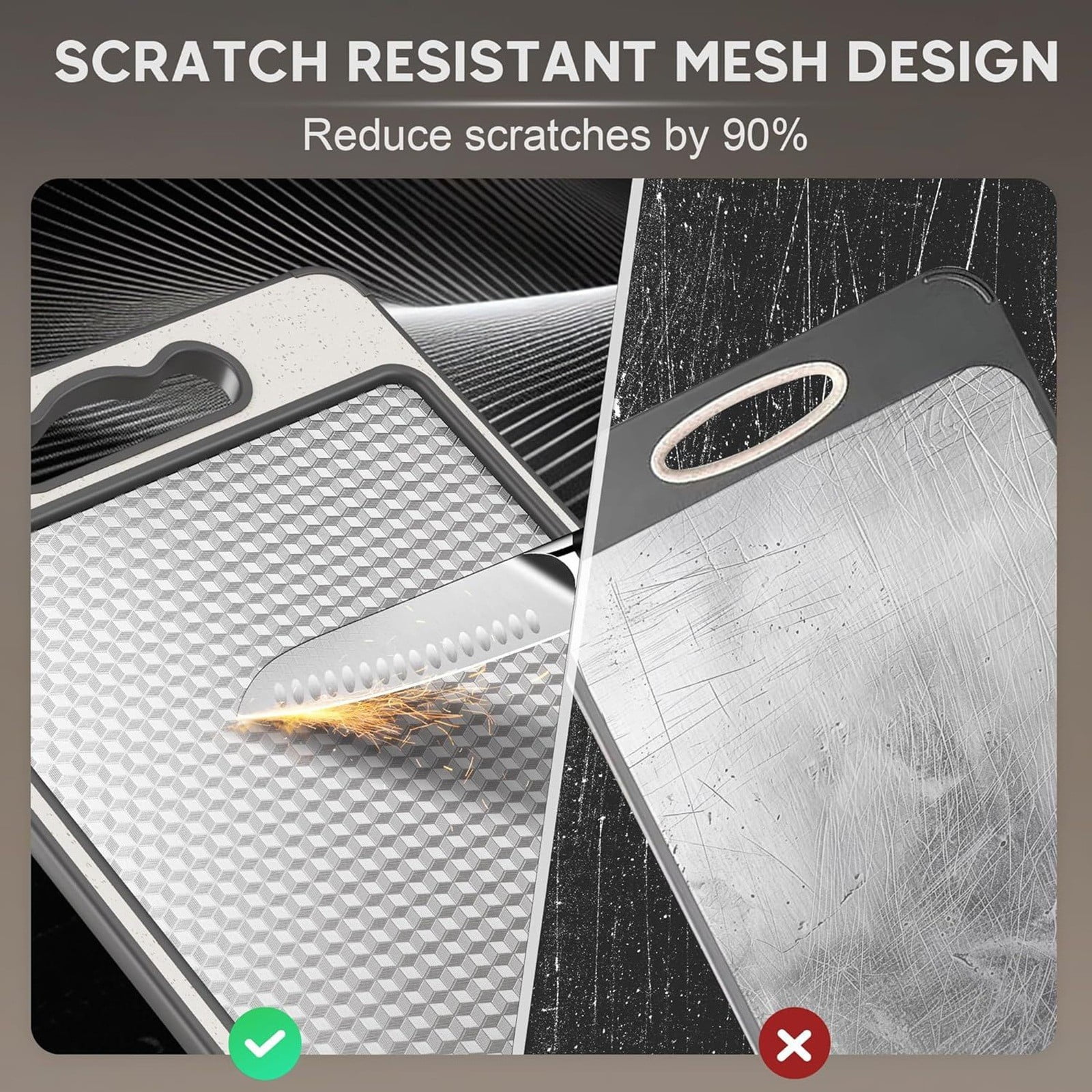 • 【Non-Porous Titanium Surface】Made from premium titanium alloy, the smooth non-porous surface resists odor absorption, staining, and residue buildup—unlike traditional wood boards that can trap moisture over time