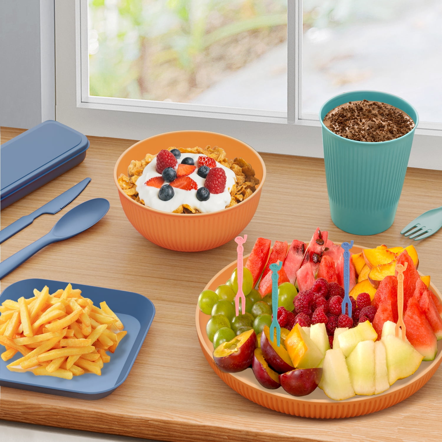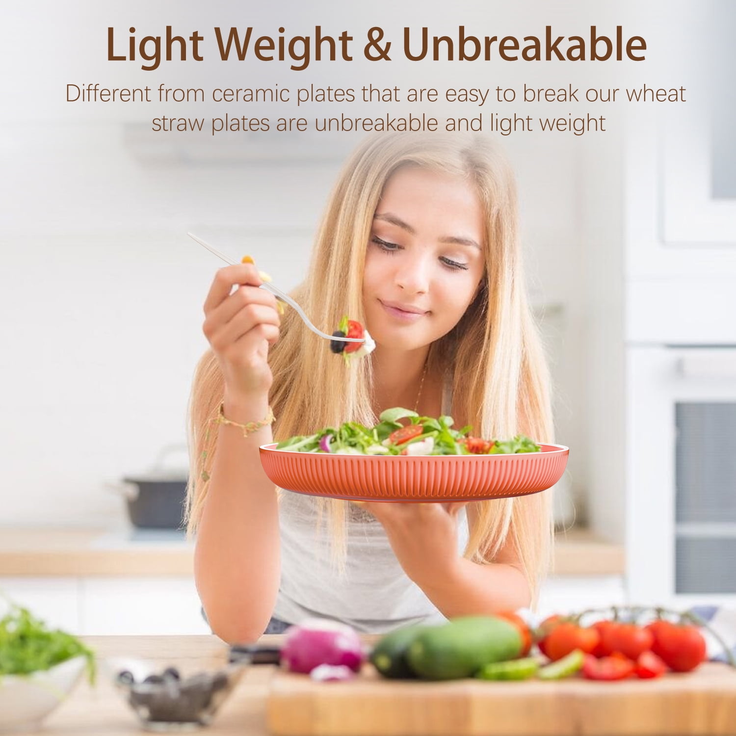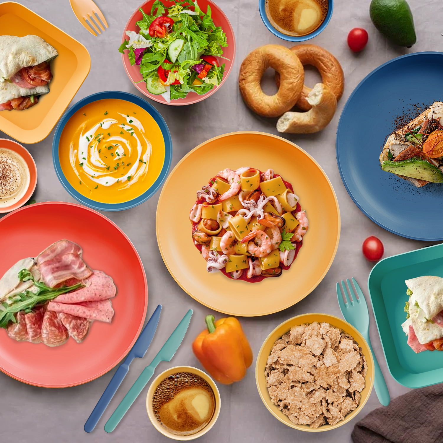 Durable and Unbreakable:Made from natural wheat straw fiber and food-grade PP material, this dinnerware set is 100% BPA-free, reusable, and environmentally friendly. Sturdy yet lightweight, this dinnerware is unbreakable, making it an excellent choice for kids, elderly family members, or anyone looking for durable, safe tableware.