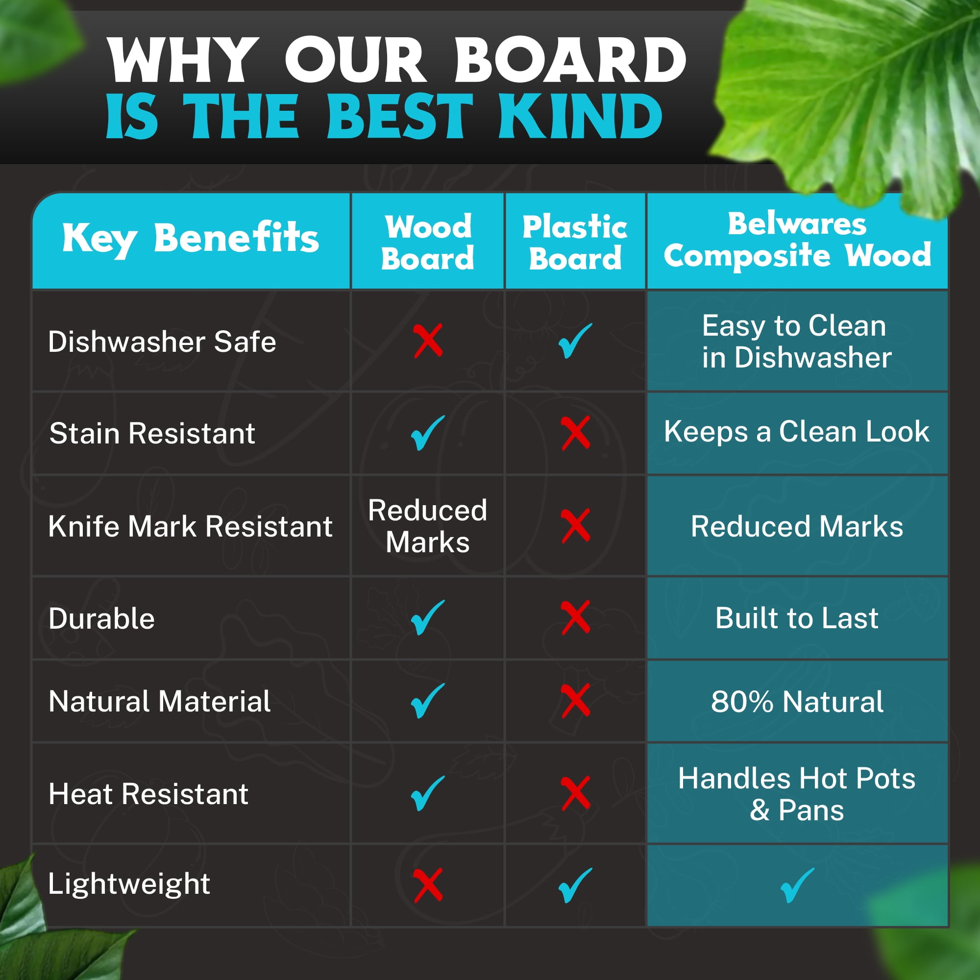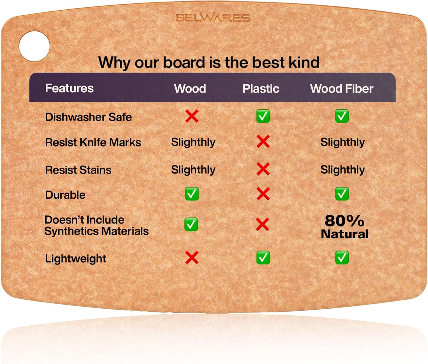 • Effortless Cleaning: This cutting board is dishwasher safe with a smooth, non-porous surface for easy cleaning.