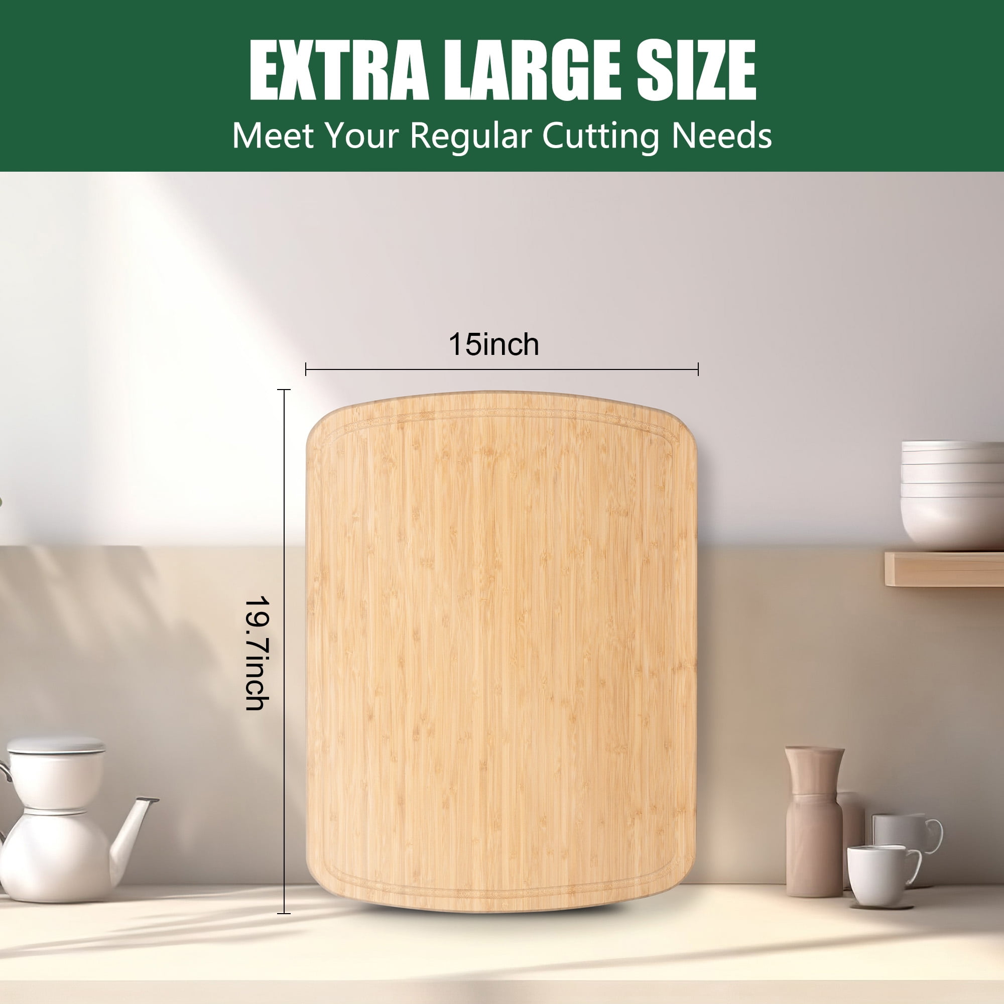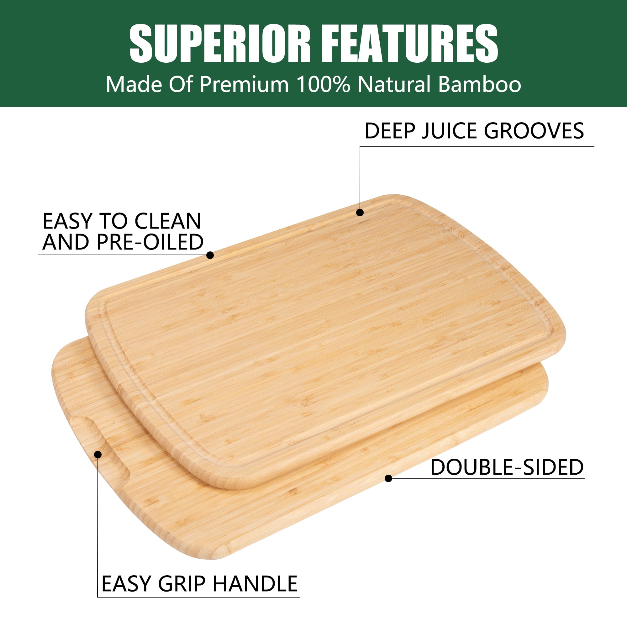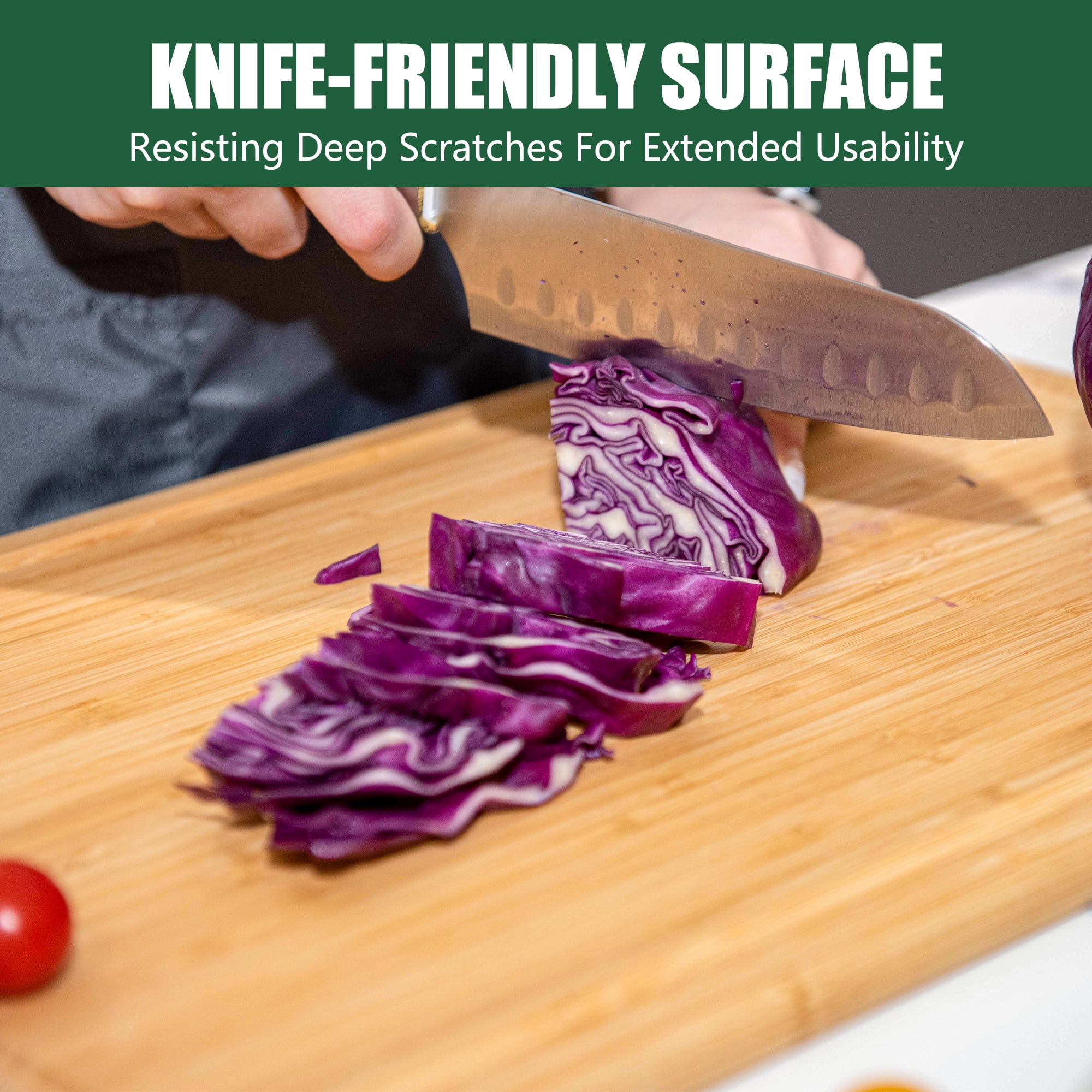 Premium Bamboo: Made from 100% natural bamboo, this board is non-porous, reducing liquid absorption and preventing splinters, cracks, or flaking.