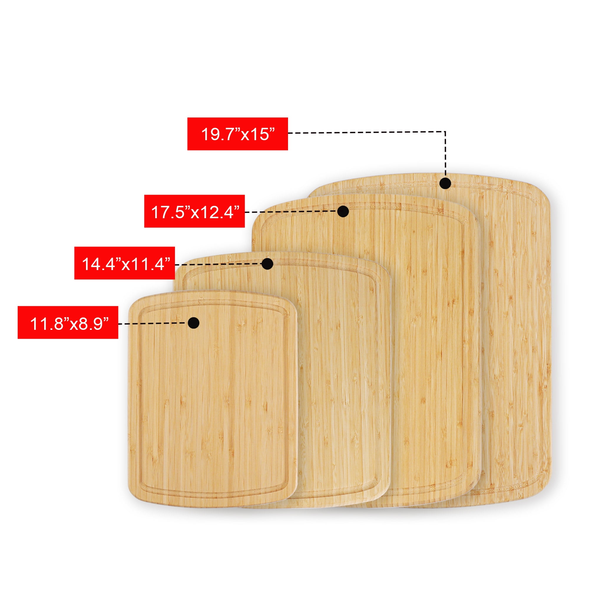 KNIFE-FRIENDLY & DURABLE! The bamboo material of the cutting boards is knife-friendly and long-lasting. It preserves your knife’s sharpness while resisting deep scratches for extended usability.
